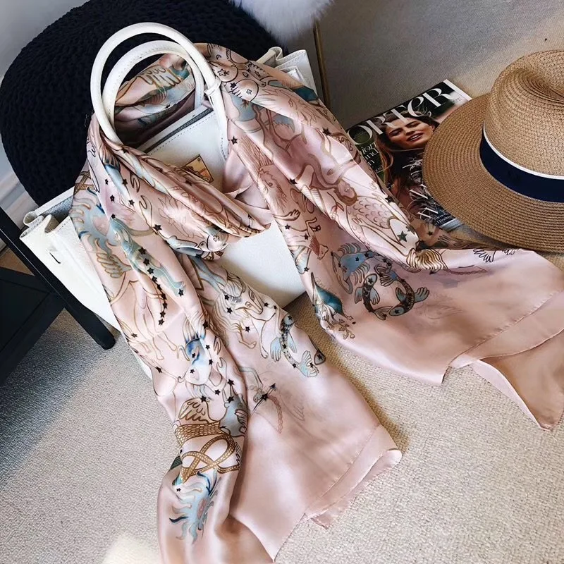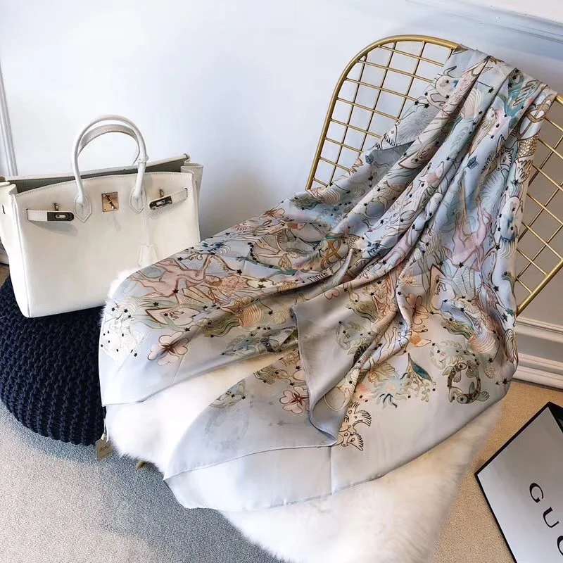 2021 дизайнерский роскошный брендовый женский шелковый шарф 12 созвездий шали и палантины бандана Bufanda платок пляжные палантины