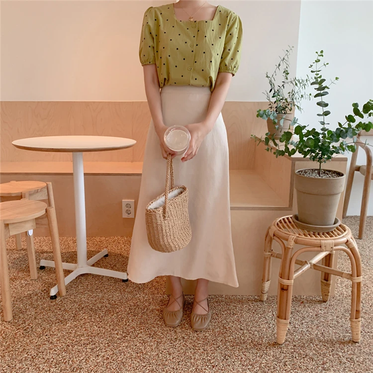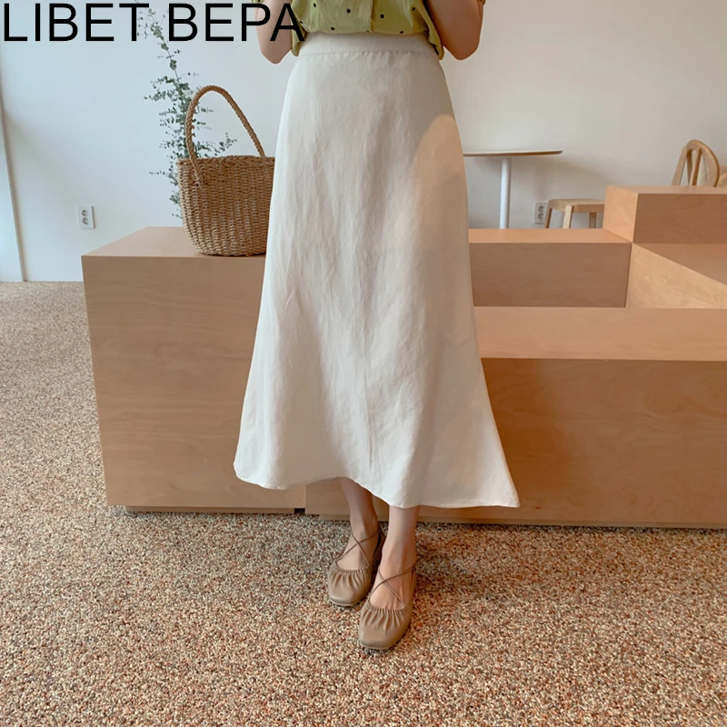 Юбка-миди женская, с завышенной талией, весна-лето, 2021