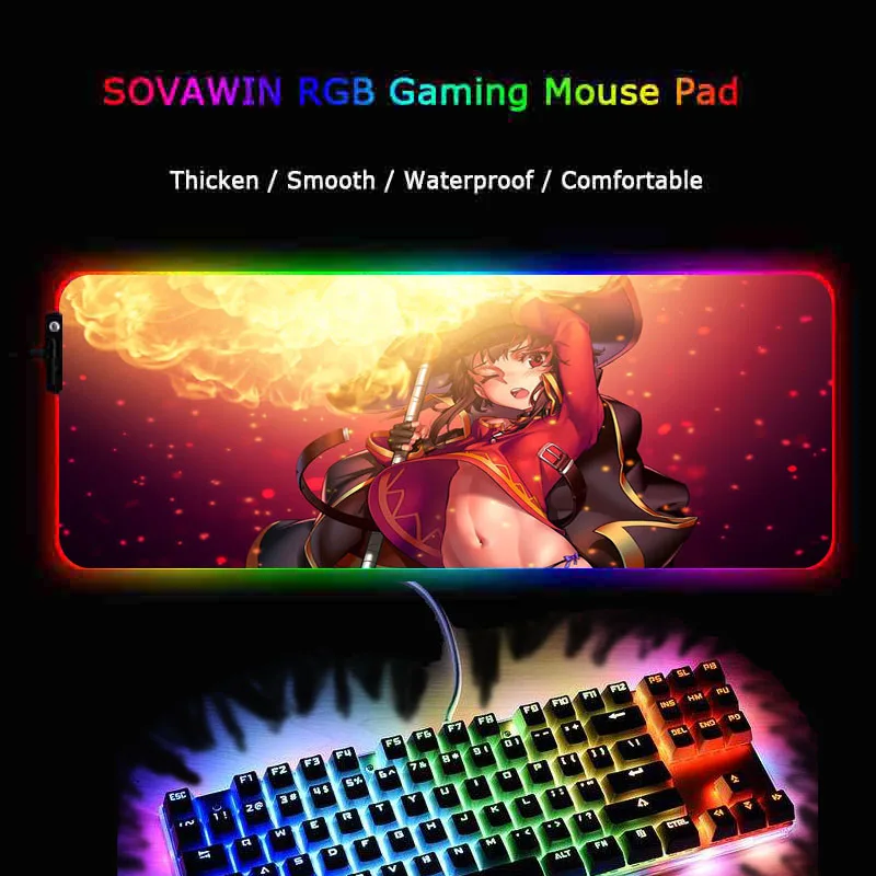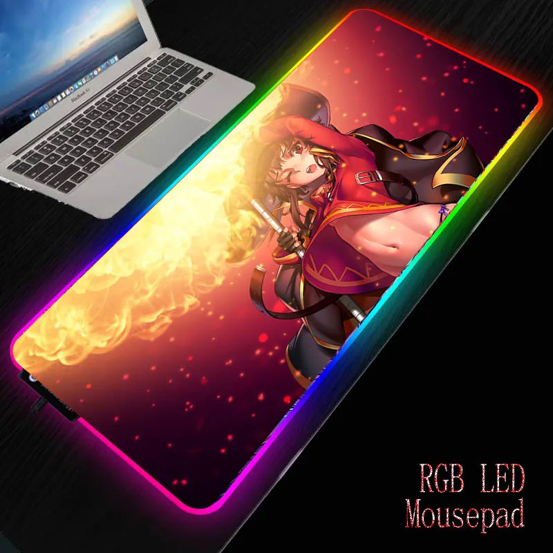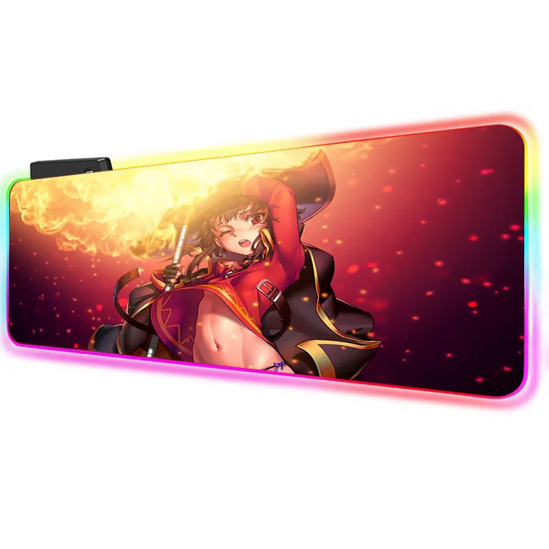Большой игровой RGB коврик для мыши MRGBEST Megumin с аниме, светодиодной подсветкой, USB клавиатура, цветной Настольный коврик для мыши, коврик для ПК, ноутбука, настольного компьютера