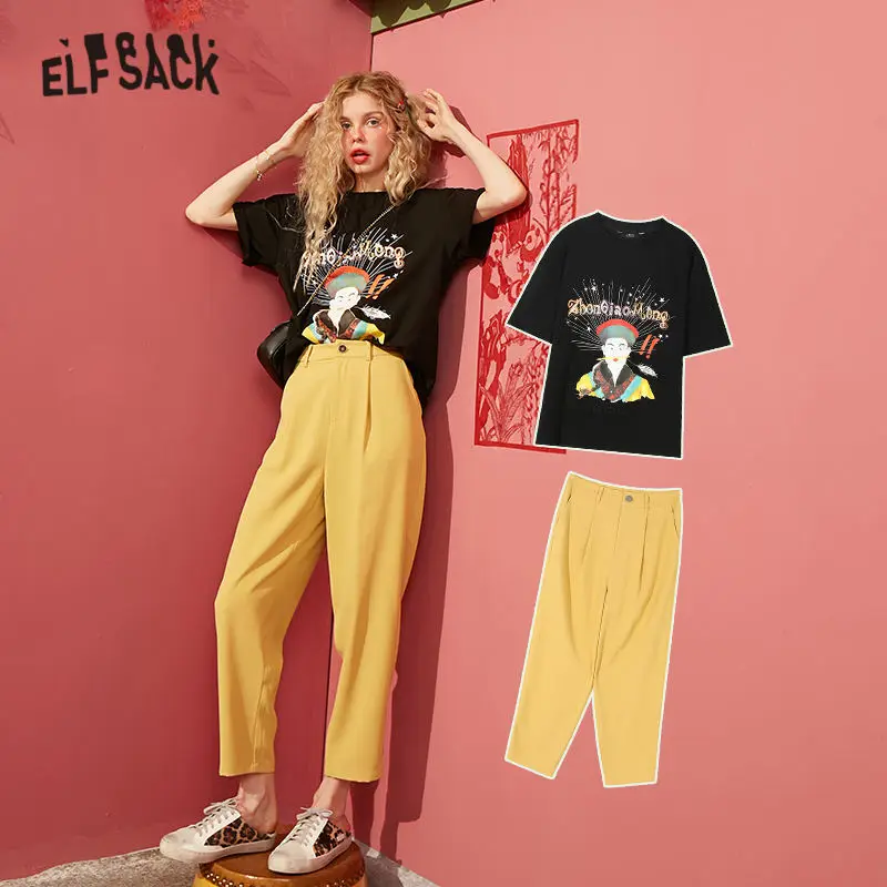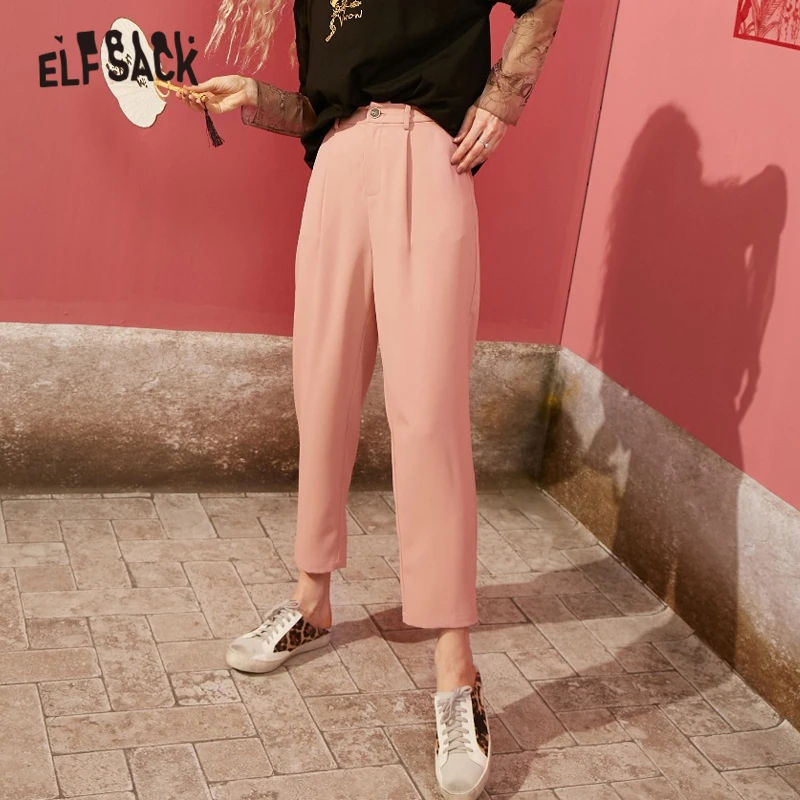 Женские повседневные шаровары ELFSACK, черные однотонные дамские шаровары с высокой талией в Корейском стиле, весна 2020