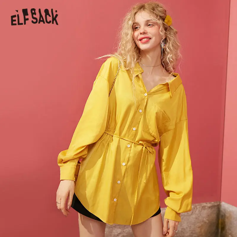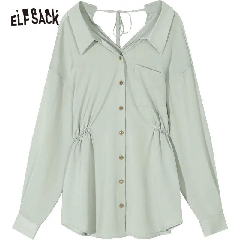 Женская Однотонная рубашка ELFSACK, белая Повседневная однобортная рубашка с поясом и открытой спиной, весна 2020