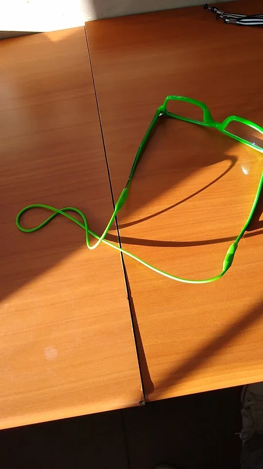 Хорошие силиконовые шнурки. Недлинные. Можно бы немного длиннее. Держит очки намертво. Если потянуть за очки, просто растягивается, не снимается. Немного цепляет волосы, когда очки одеваешь. Доставка очень быстрая. 25 дней в Украину на Новую почту в объединенной посылке. Рекомендую.