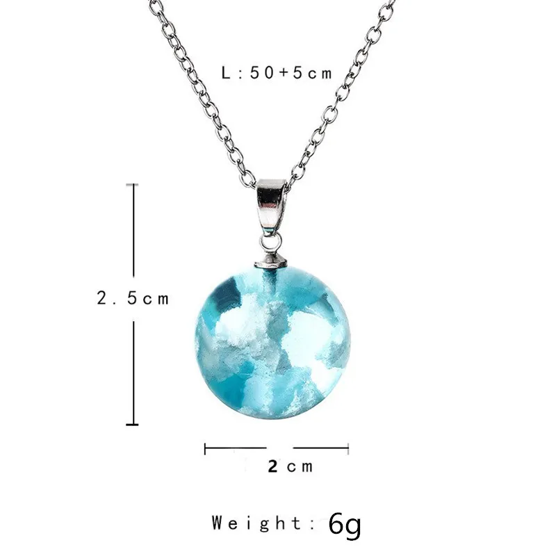 Ожерелье с подвеской в виде шара из смолы с голубым небом и белым о...