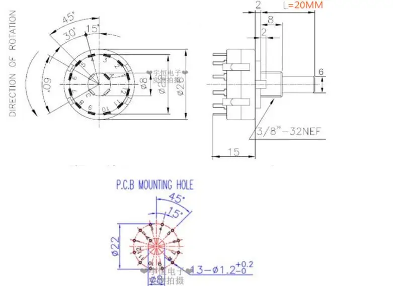 1 шт. RS26 1-полюсный 12-позиционный Регулируемый поворотный переключатель каналов с крышками одинарный селектор