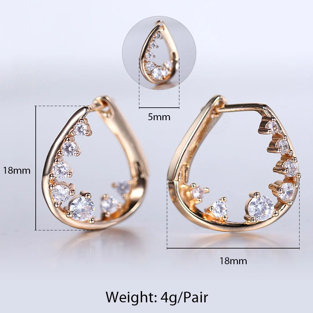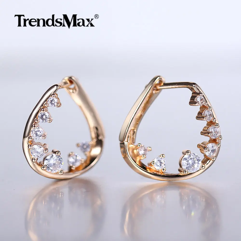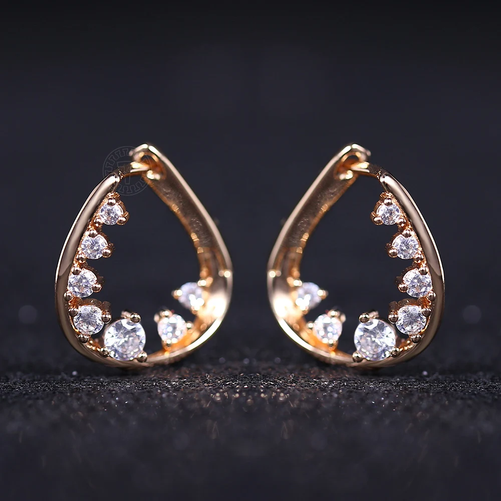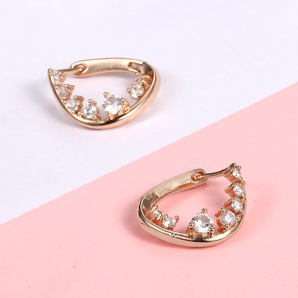 Серьги-гвоздики Huggie GE285 женские, полые кружевные геометрические неправильной формы с белым кубическим цирконием, розовое золото 585 пробы для девушек и женщин