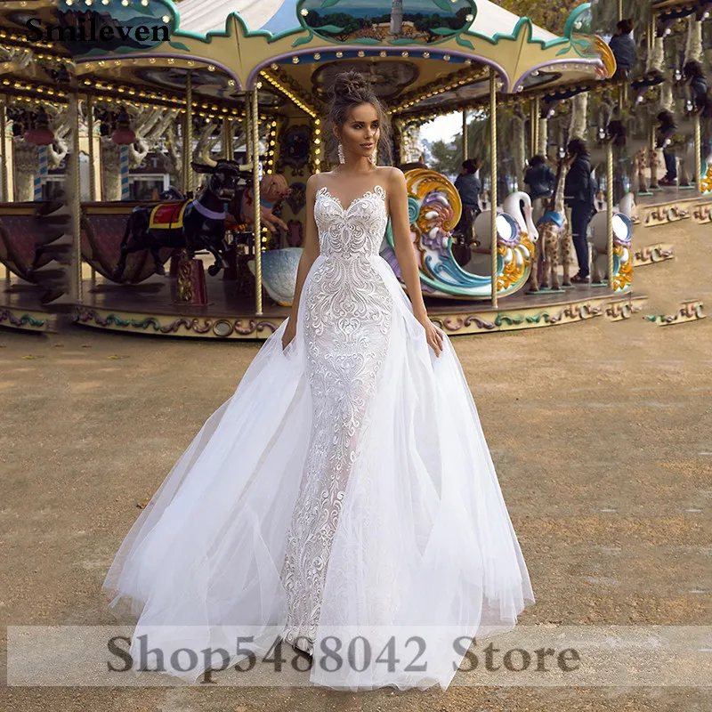 Свадебное кружевное платье-Русалка со съемным шлейфом