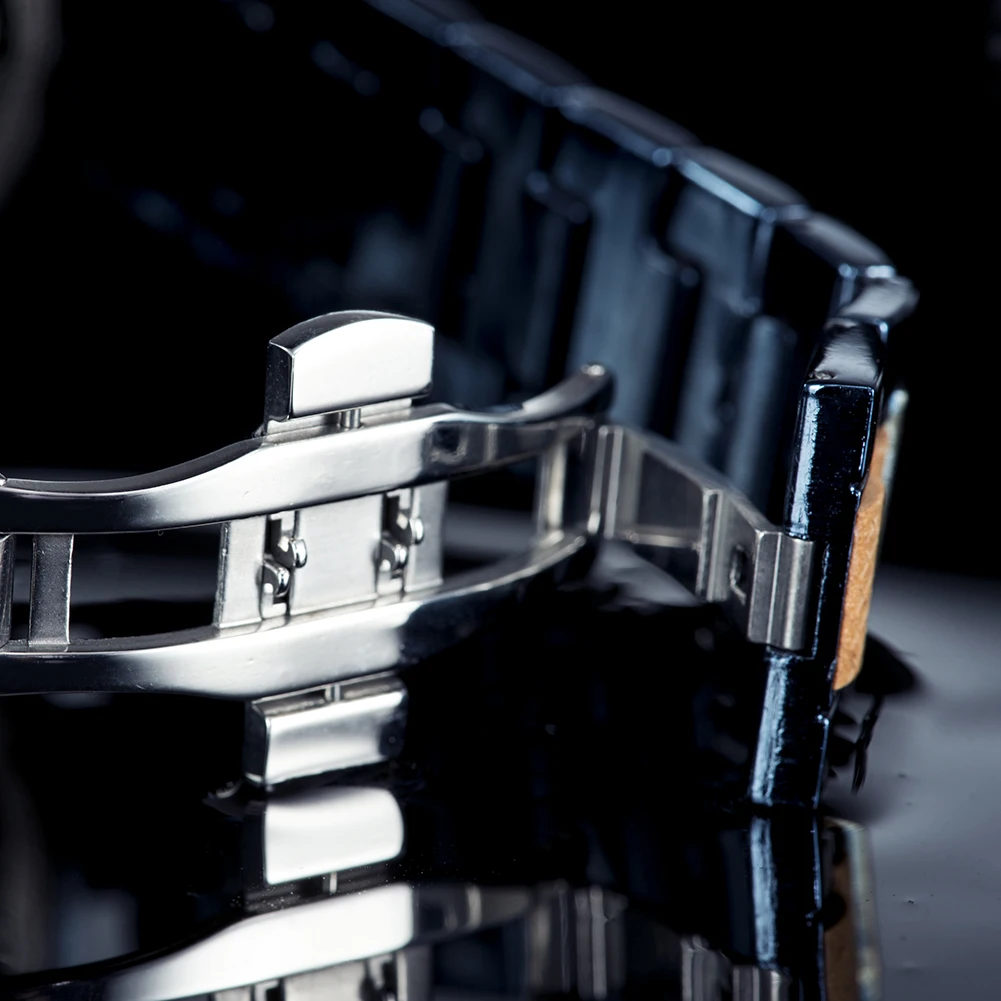 Стильные деревянные часы из нержавеющей стали, отличное качество. Наша упаковка-это простая брендовая деревянная коробка или коробка с отверткой внутри, чтобы вырезать ненужные ленты и инструкции по использованию часов. Все кнопки работают, секундомер работает, и вы можете отследить до нескольких минут. Также имеется окошко даты. Все в целом, крутые модные часы