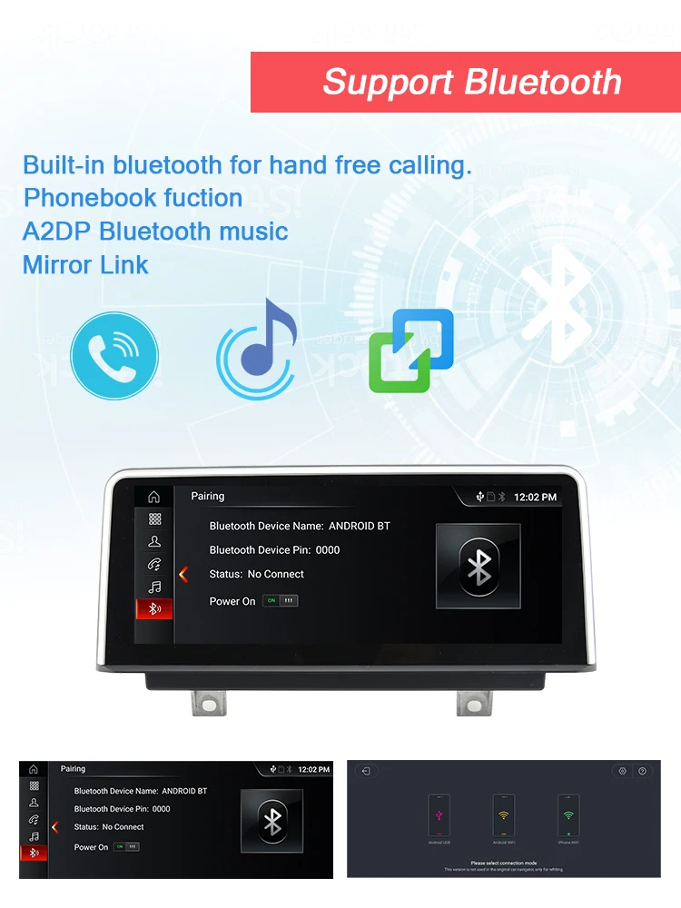 Поддержка зеркальной связи для устройств Android и IOS через usb-кабель или WIFI.Даже достичь взаимного контроля между этим устройством и вашим телефоном.