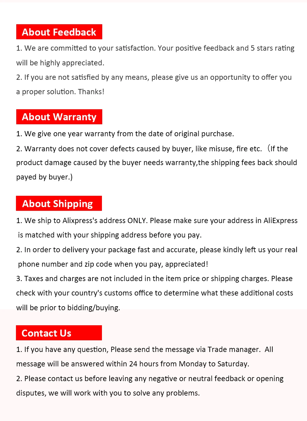 Продавец добр и уместен. Мой совет получателям; Они спрашивают, что кнопки пустые. Нельзя Копировать цифры. Как я поделился на первом фото, они не работают на своих устройствах, скопированных с мастерской картой. Они возьмут его из Интернета, взглянув на рекламные видео, связанные с этим устройством, решая, проколы ли они. Или они узнают, подходит ли товар, связавшись с продавцом и оформите заказ. Лифт скопировал касание. Я дал 4 звезды, чтобы предложить мне решение в своем следующем заказе. Они будут покупать у Турции. Они также не оплачивают таможенную пошлину, потому что Доставка осуществляется Aras shipping.