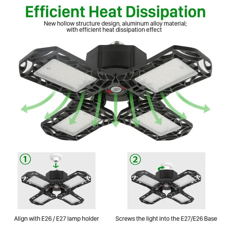 -Супер яркий светодиодный гараж светильник-с 4 Ультра-яркая подсветка с Регулируемый алюминиевый светодиодный головок-это особенности светодиодный технологии с 4*24 шт. наивысшего качества диоды для подавления переходных скачков напряжения, что общий объем 12000 люмен, таким образом, CRI80 +, дневной светильник 6000K для вашего гаража, обеспечивающий лучший внутренний светильник.
