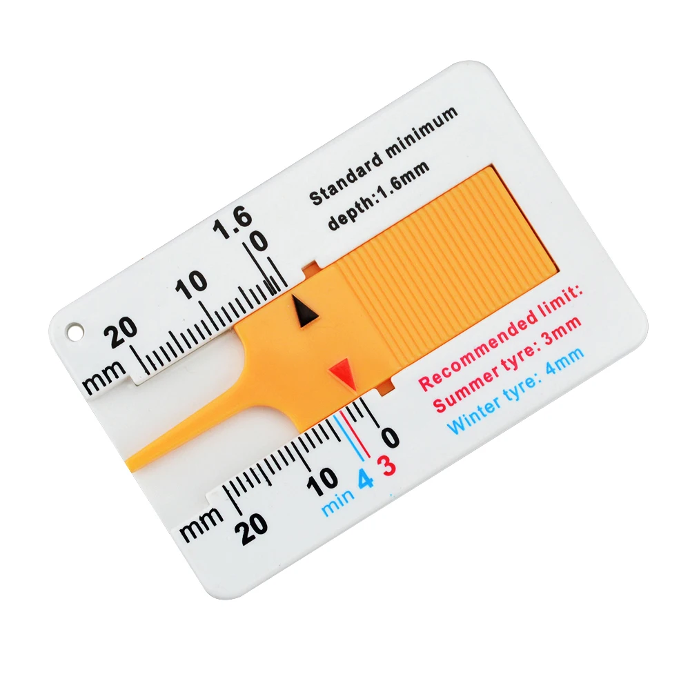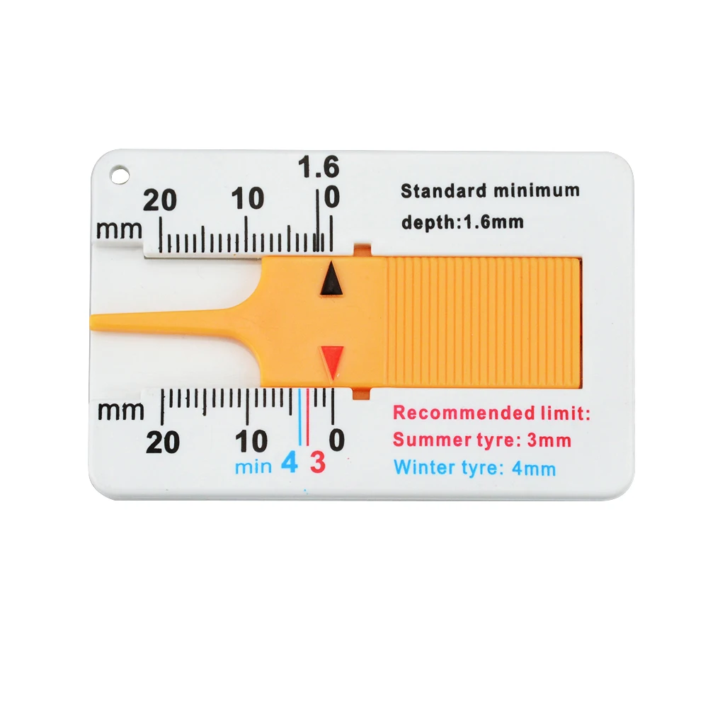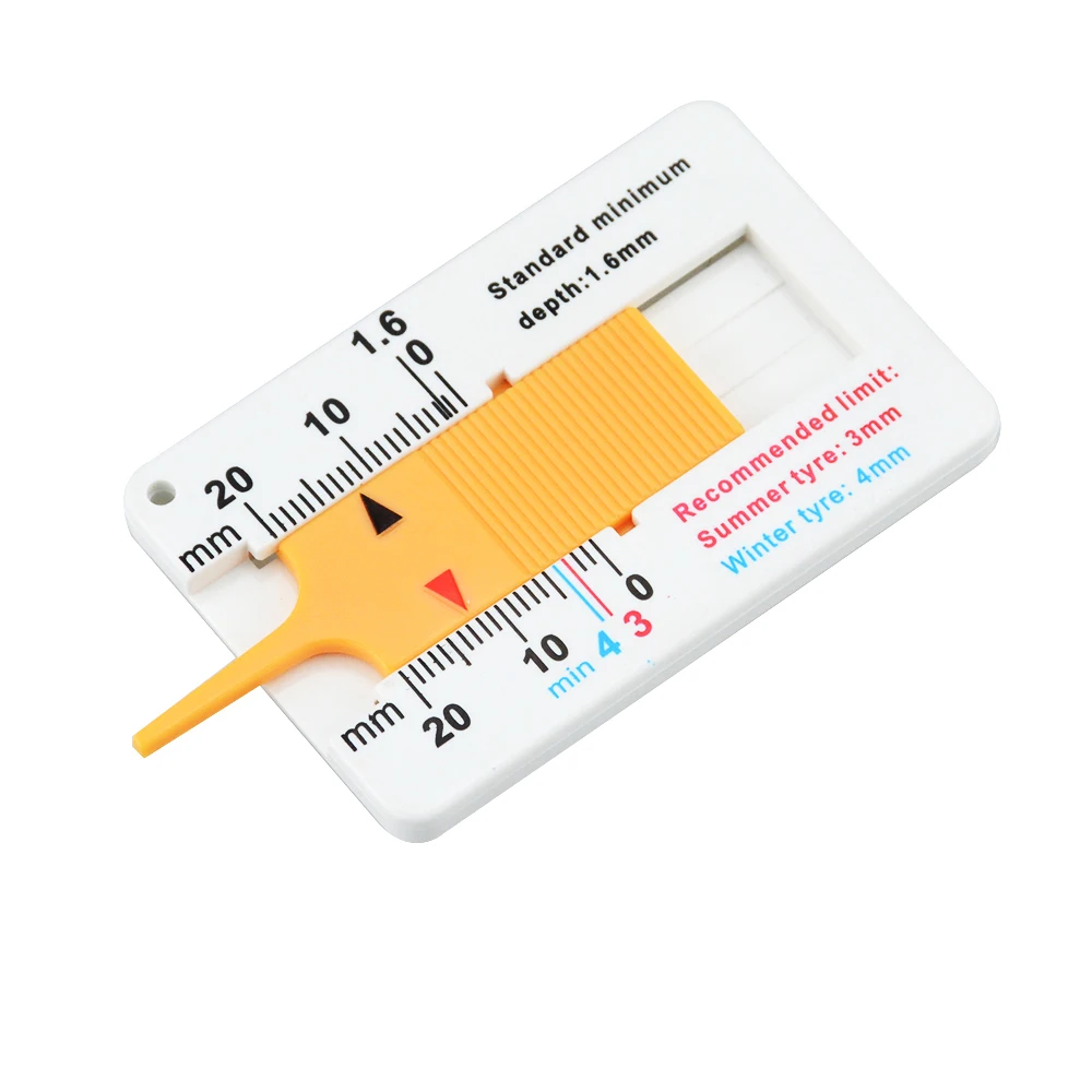 1. Летние шины 3 мм 2. Зимние шины 4 мм Название: пластиковая шиномонтажная линейка для замера глубины Материал: пластик Диапазон: 0-20 мм Значение ошибки: ± 0,1 мм