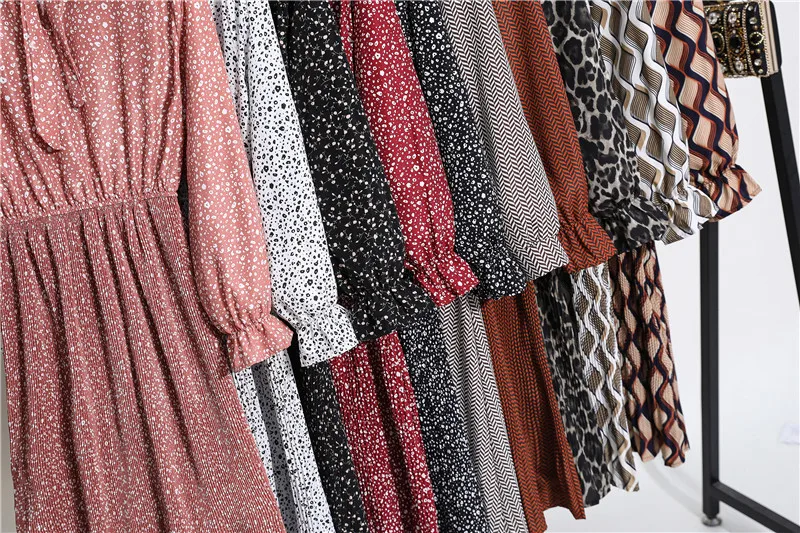 Женское шифоновое платье с длинным рукавом, винтажное офисное плать...