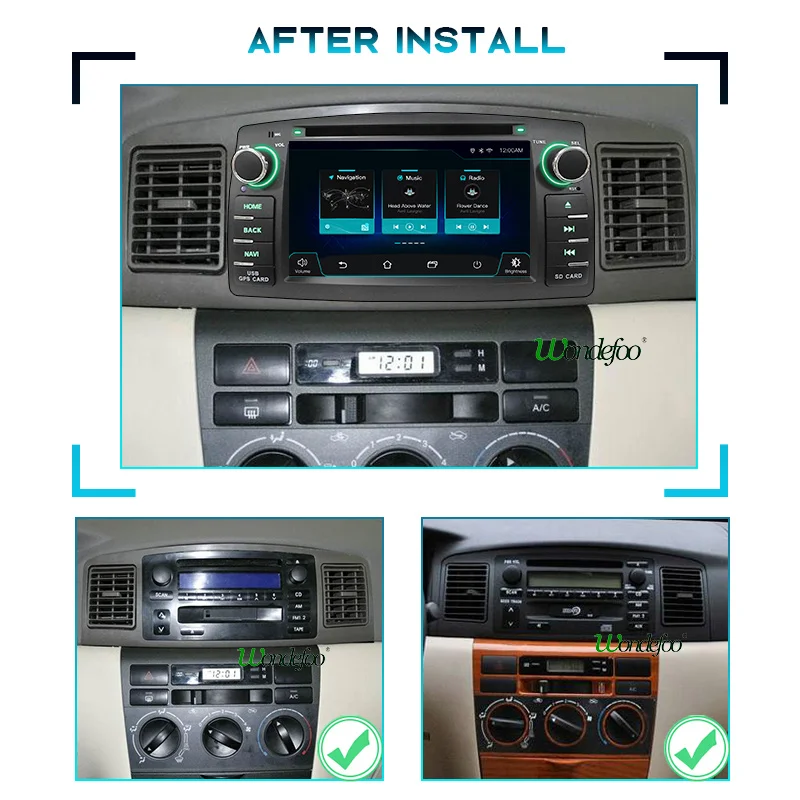 Быстрая доставка. Радио не подходит на 100%, но я немного царапаю углы и лучше сидит. ТКАНЕВОЕ радио также имеет небольшой зазор. Работает очень удовлетворительно-музыка, bluetooth, звонки, OBD, камеры, Wi-Fi соединение; Все хорошо. Мои ключи на рулевое колесо программируются, только ключ «режим» не работает, но я не беспокоюсь, так как 4 других работают без каких-либо игр с кабелями. Toyota corolla t-spirit 2004.