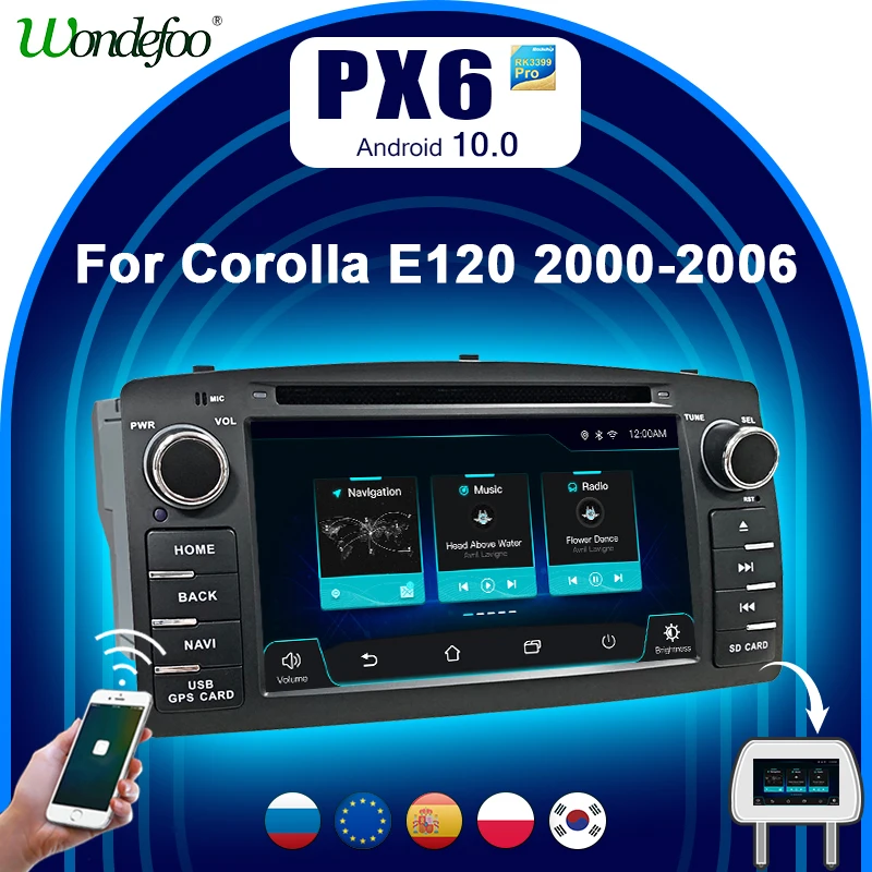 Автомагнитола PX6, мультимедийная система на Android 10 Магнитола 2 din, с gps, для Toyota Corolla E120, BYD F3, типоразмер 2 din