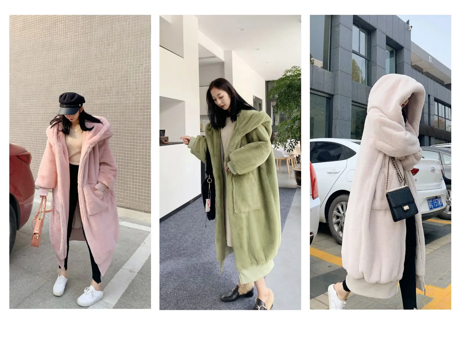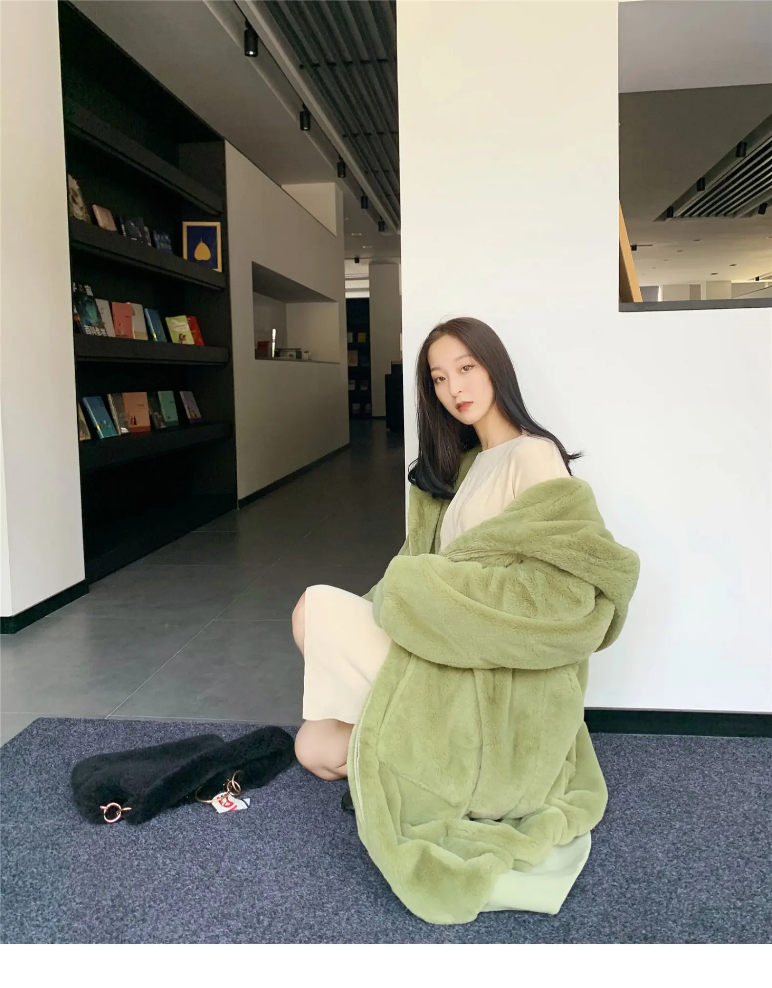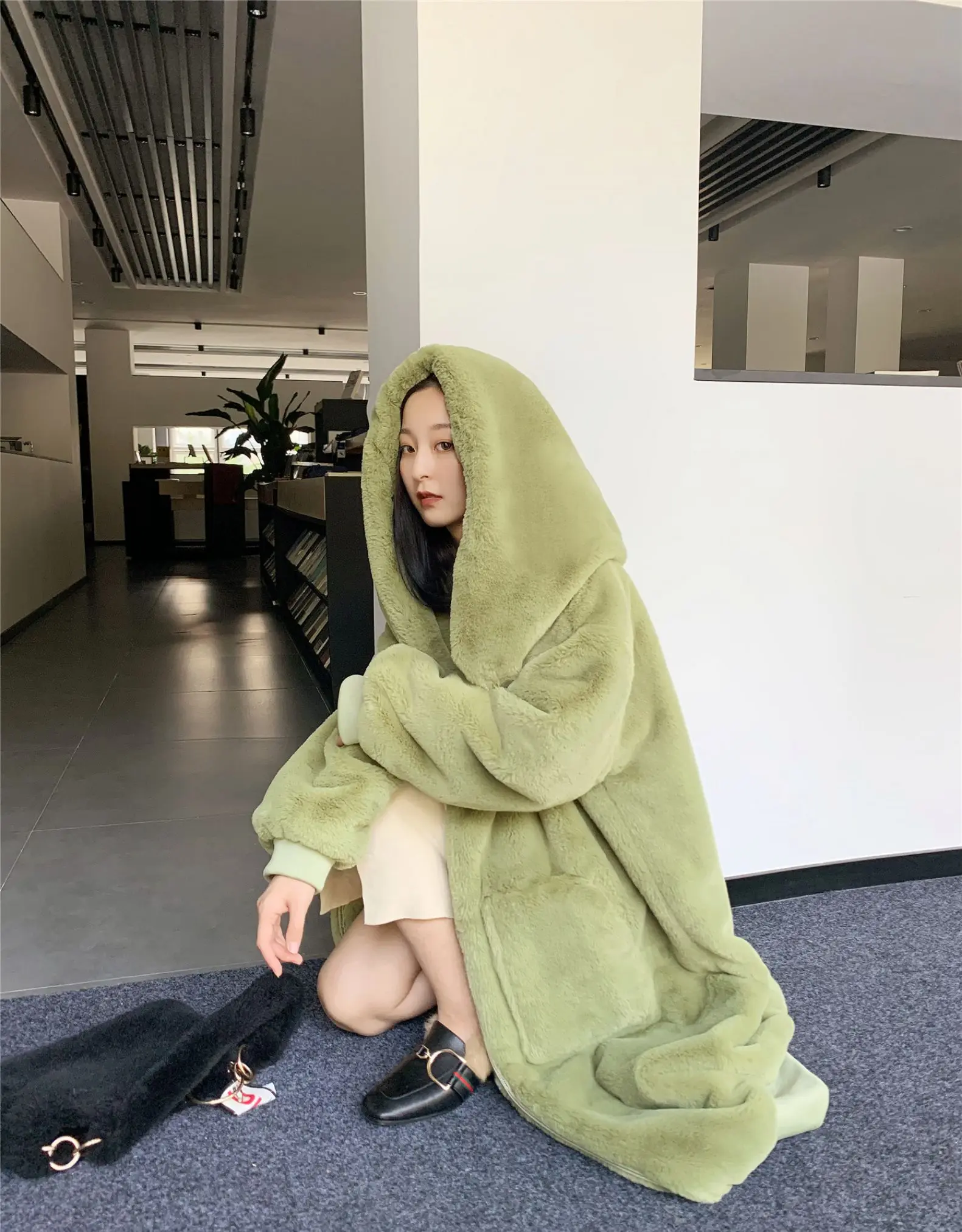 Женское зимнее однотонное меховое пальто с капюшоном, большие размеры, женская модная зеленая Толстая плюшевая куртка с большими карманами, теплые парки Jackes ZY18