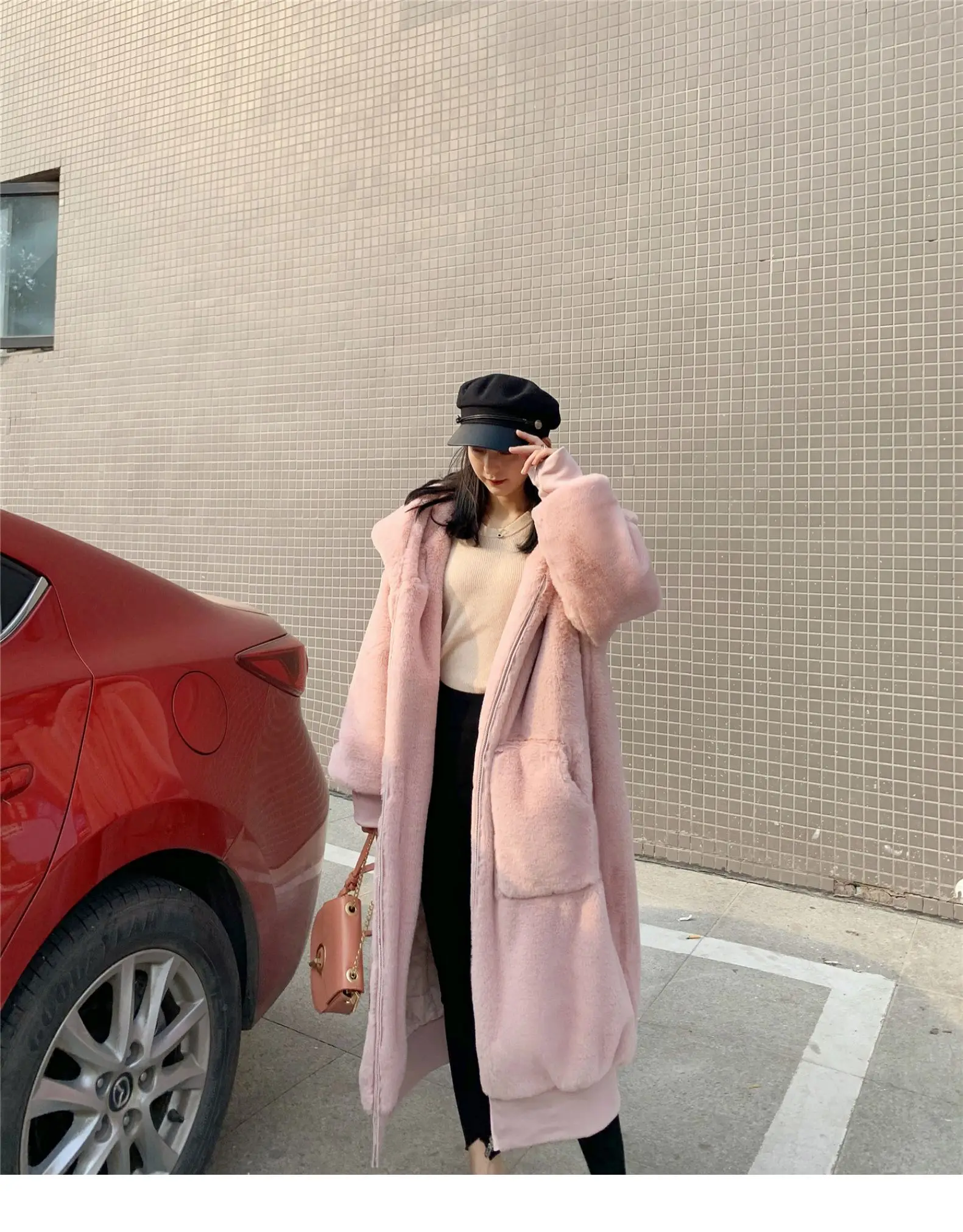 Женское длинное меховое пальто, утолщенное пальто из искусственного...