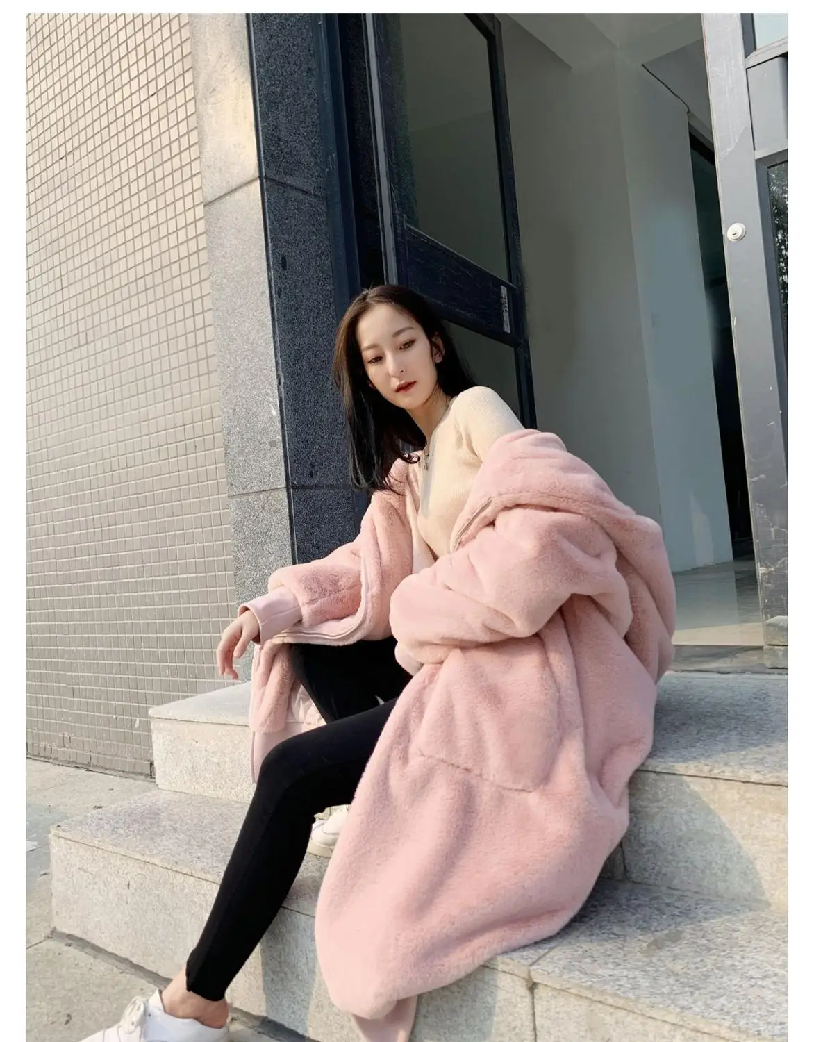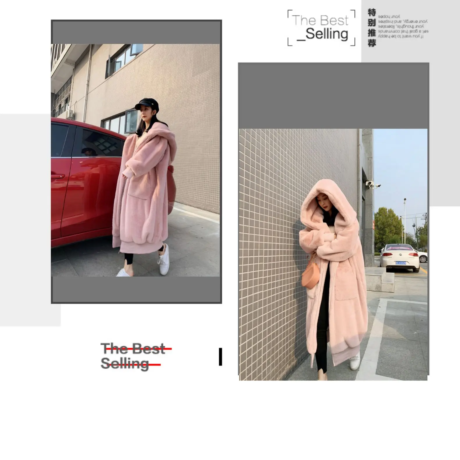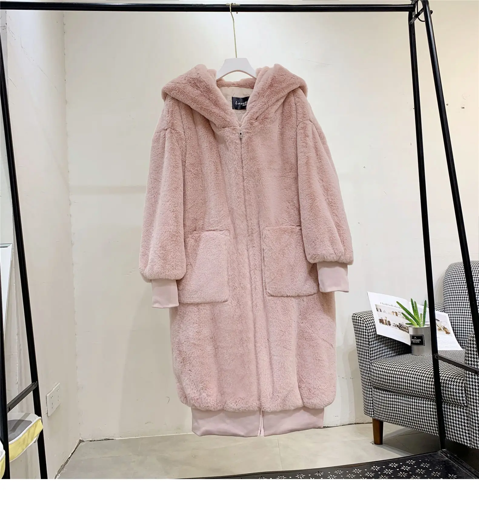 Повседневное плюшевое пальто с капюшоном, высококачественное длинно...