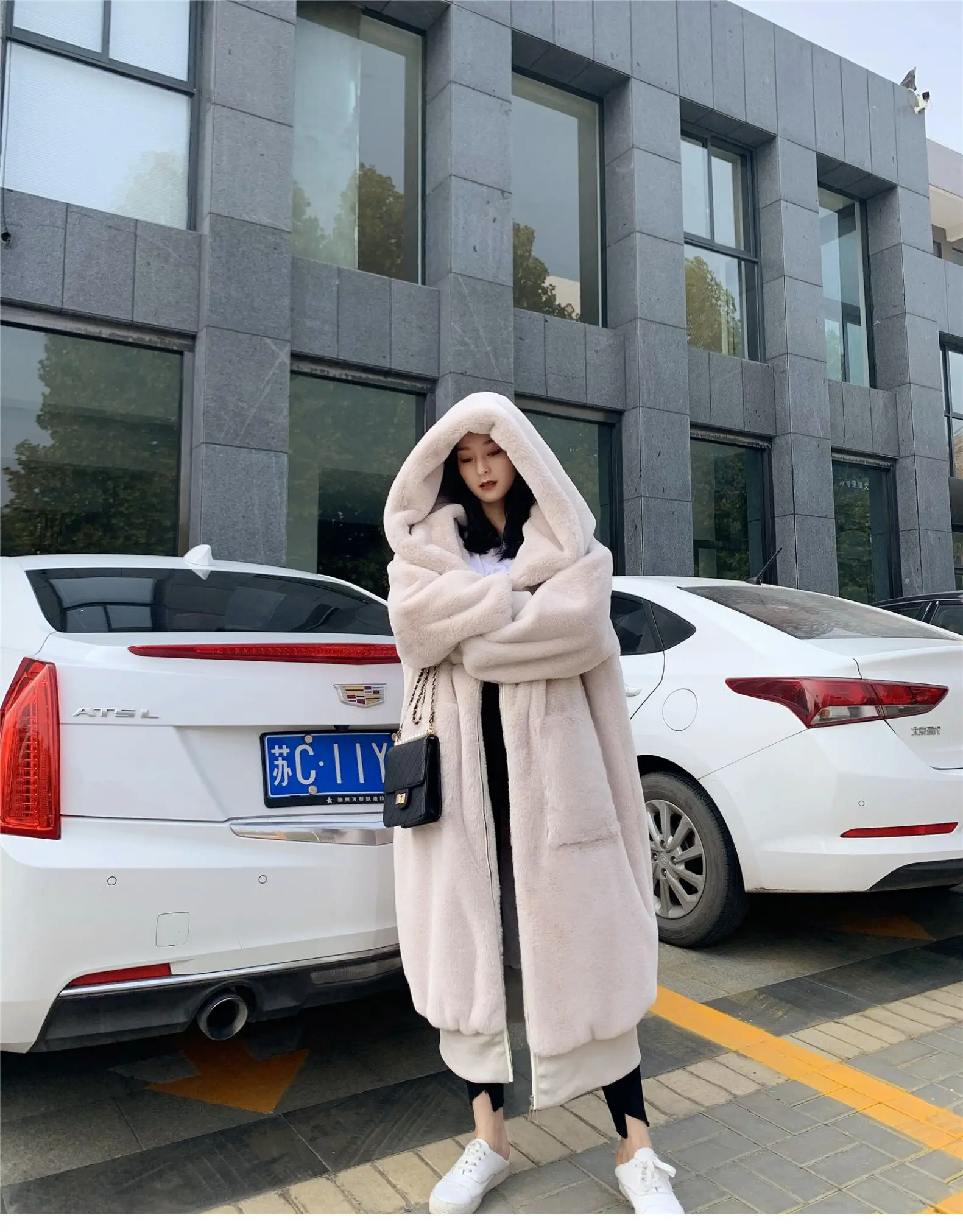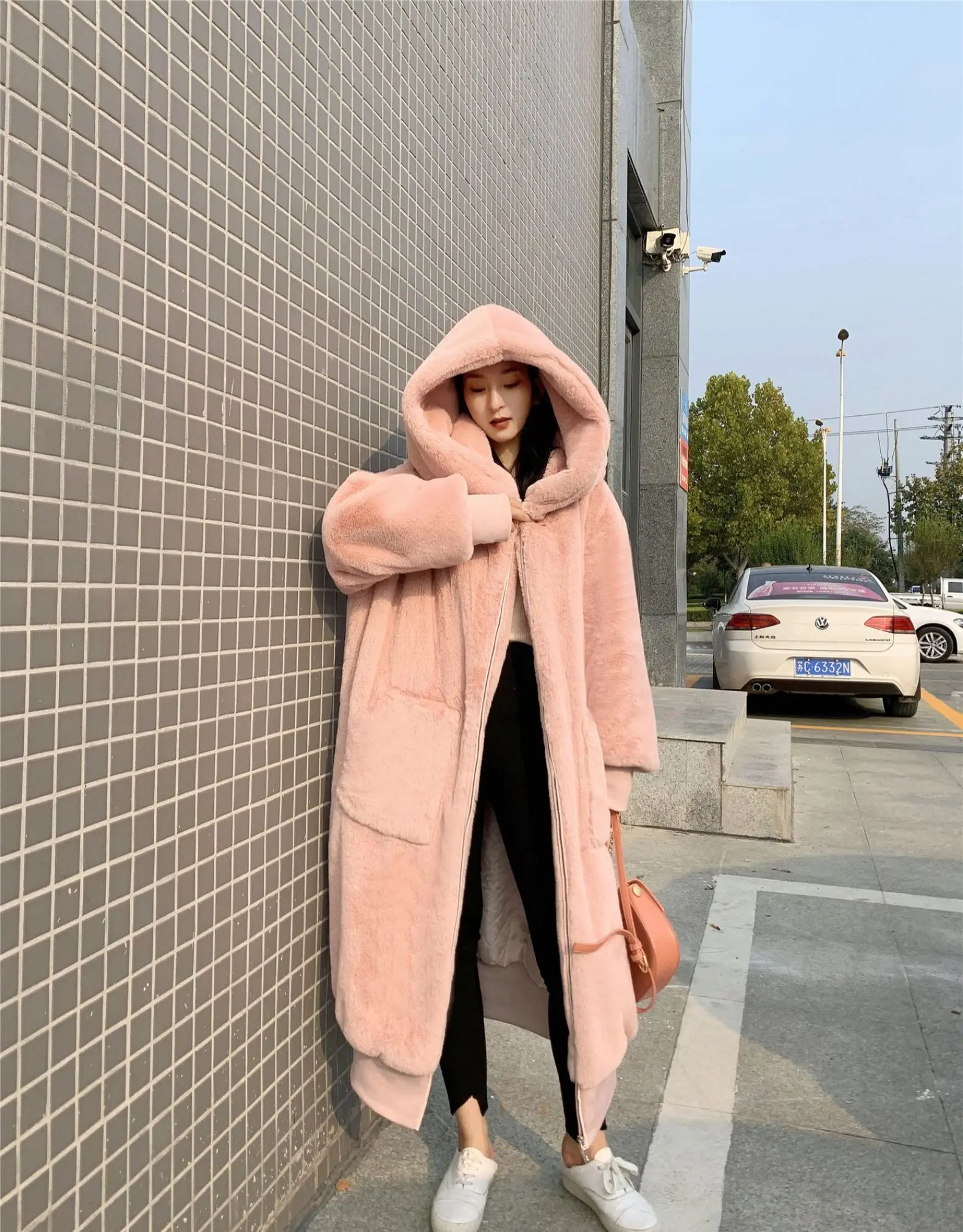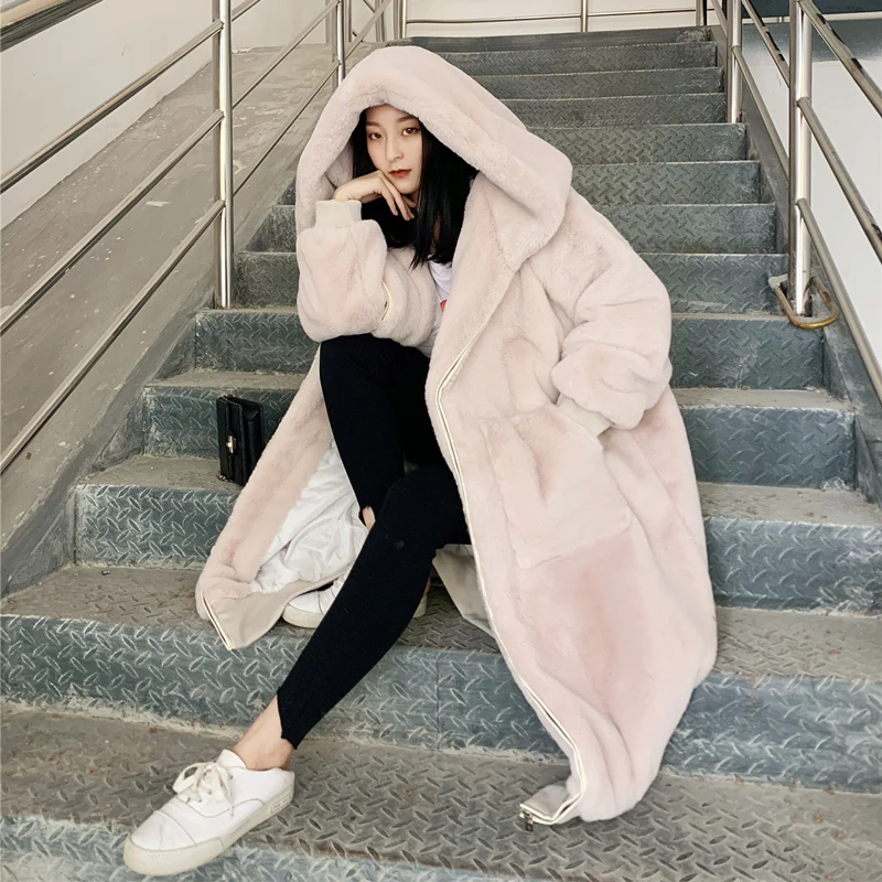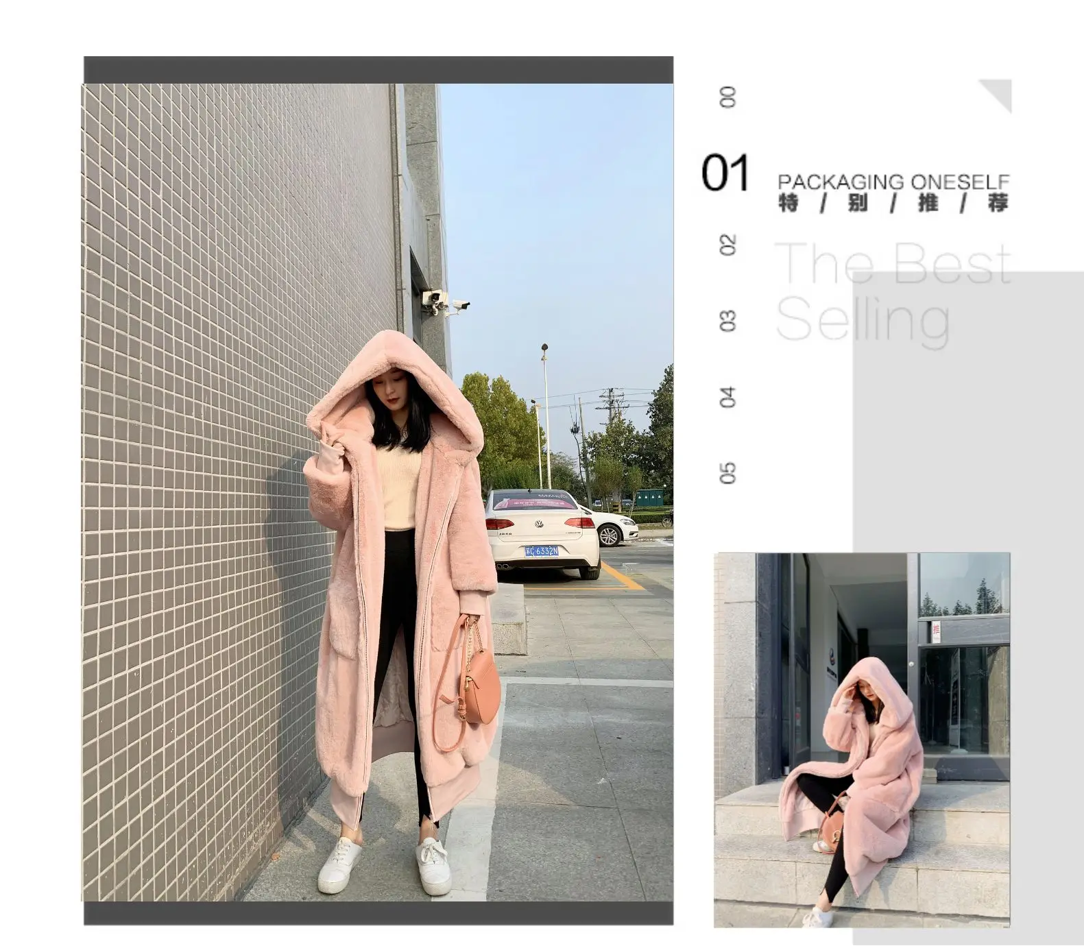 Повседневное плюшевое пальто с капюшоном, высококачественное длинно...