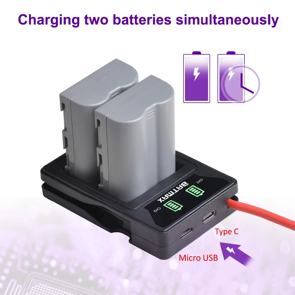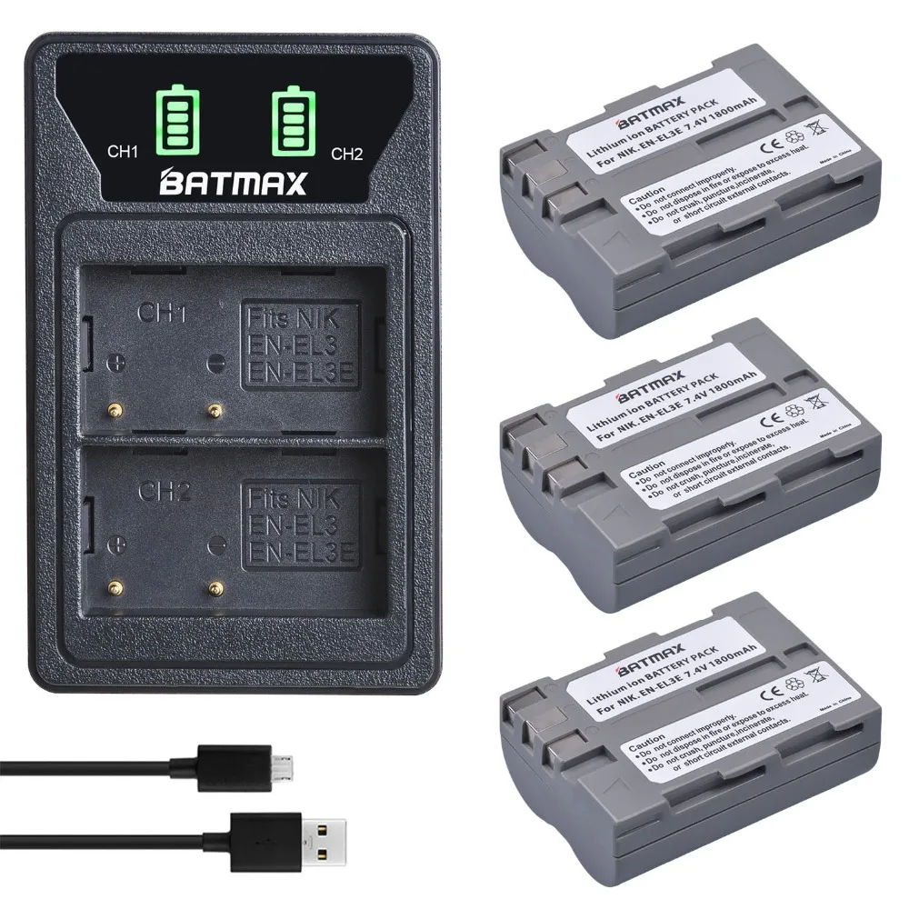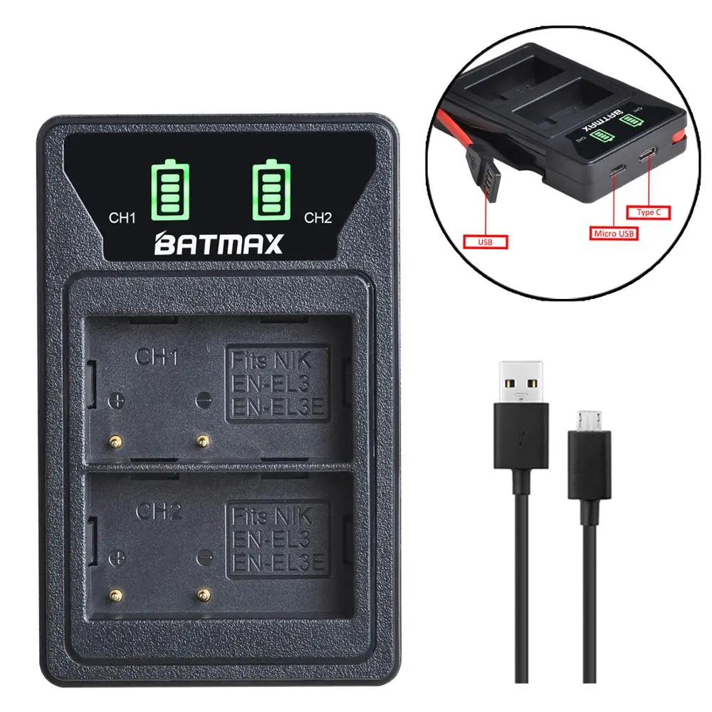 Аккумуляторная батарея Batmax 1800 мАч EN-EL3E EN-EL3 + двойное зарядное устройство со светодиодным индикатором и портом Type-C для Nikon D30 D50 D70 D70S D90 D80 D100 D200 D300