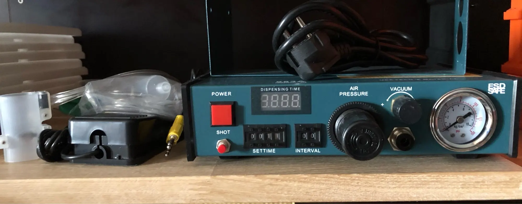 1 * Основной блок1 * ножной переключатель1 * подставка для дозатора2 * 30cc жидкостные бочки5 * стальная игла/наконечники1 * Воздушная трубка к бочке1 * Воздушная трубка для подачи воздуха1 * ручной переключатель1 * кабель питания