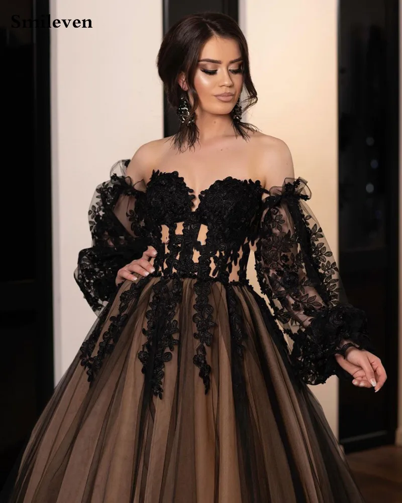 Скромное Черное вечернее платье Smileven 2021, ТРАПЕЦИЕВИДНОЕ блест...