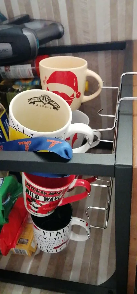 Объявляет о доставке за 10 дней и заняло почти 20. Вы не можете положить чашки на все крючки, за небольшую отделку, и потому что, если вы положите чашки в последние крючки, двойная опора того, насколько она хрупкая.