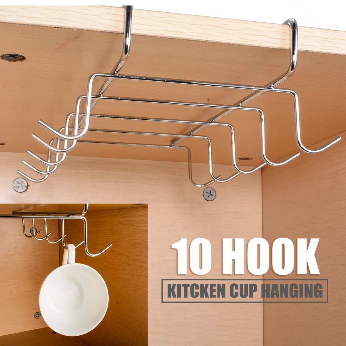 Стеллаж для хранения кухонных чашек, 10 крючков, подвесная стойка для чашек, стеклянный Органайзер, подвесная вешалка для полки, прочные бытовые инструменты для хранения