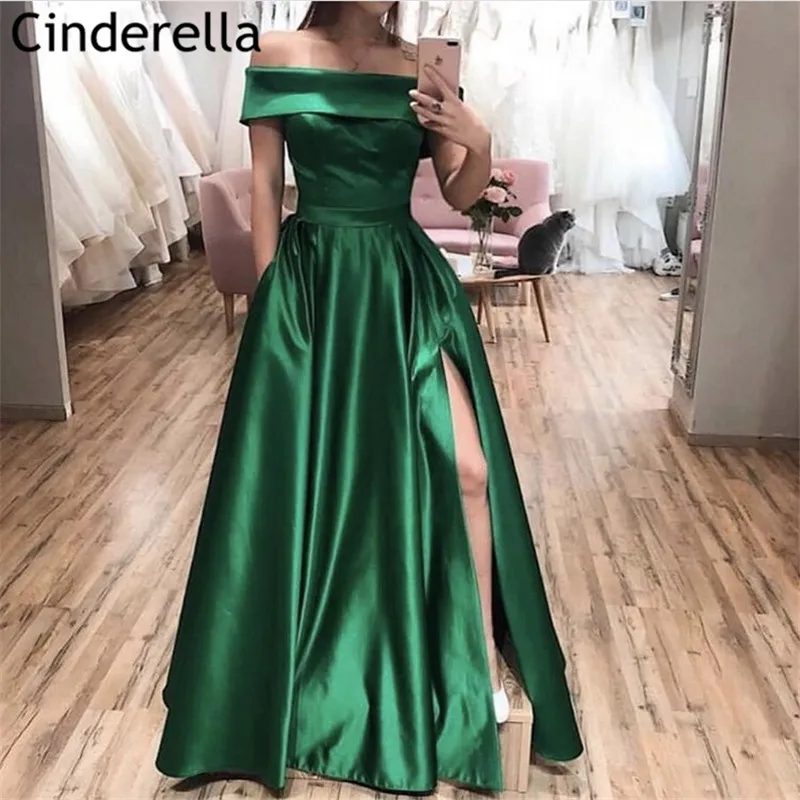 Женское атласное платье с открытыми плечами, плиссированное платье А-силуэта с Боковым Разрезом, платье для выпускного вечера