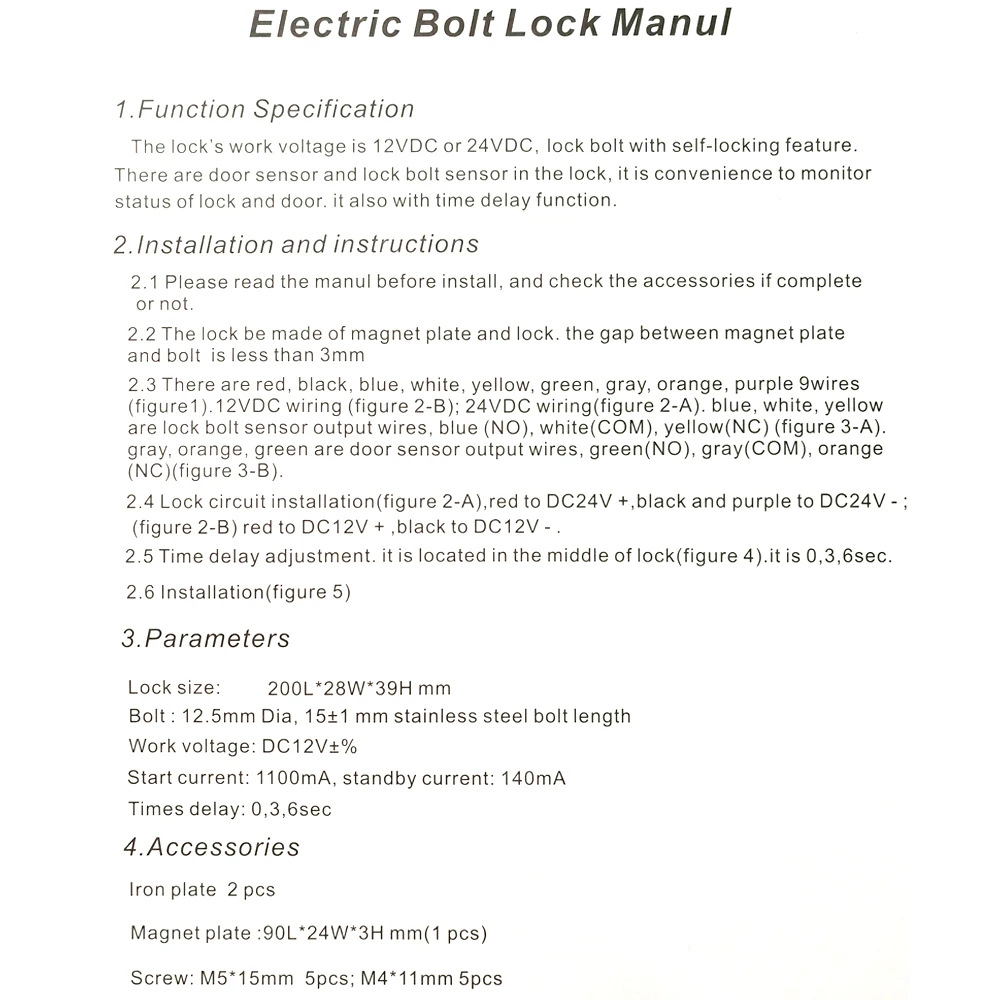 Врезной дверной замок, 5 проводов, магнитный выход с таймером, 12 в пост. Тока