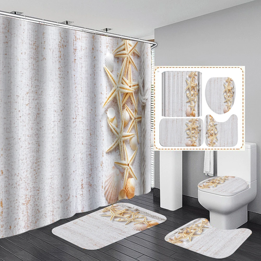 180*180 см пляжные Раковина Морская звезда ткань Душ Шторы s Ванная комната наборы занавесок Противоскользящий коврик для ванной комнаты в Ковер Крышка для унитаза коврик для ванной