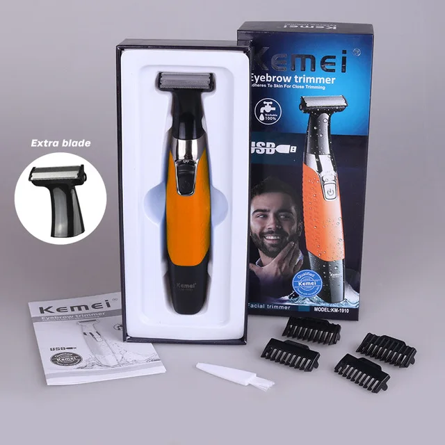 Электробритва Kemei аккумуляторная для мужчин, триммер для бороды с дополнительным лезвием, моющаяся машинка для бритья, 100-240 В, KM-1910 38