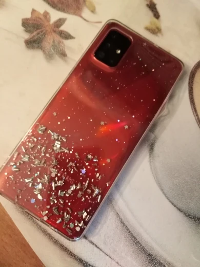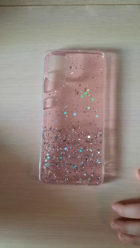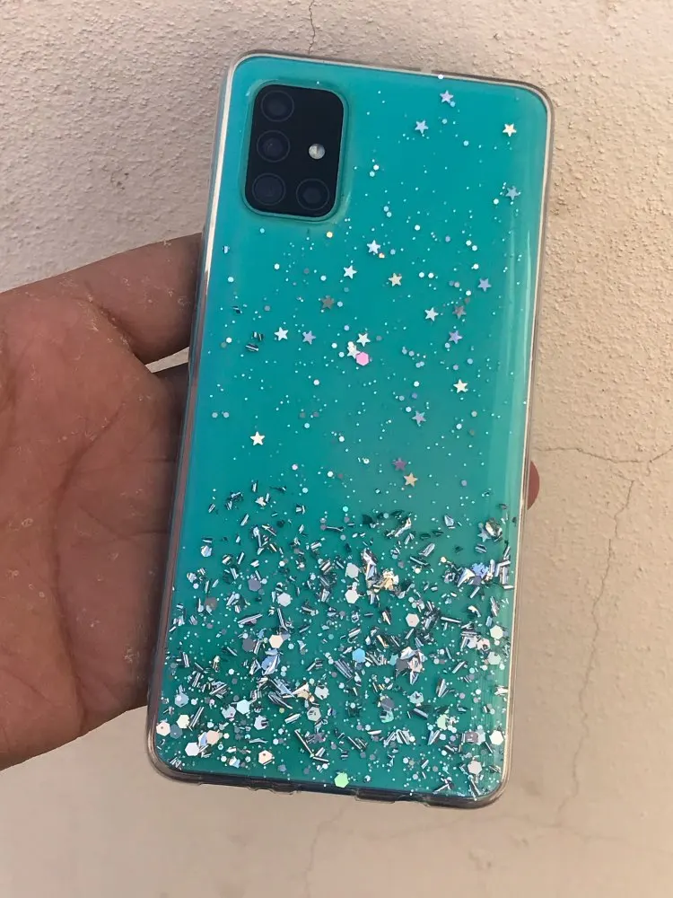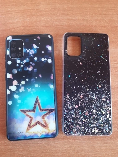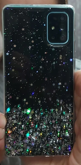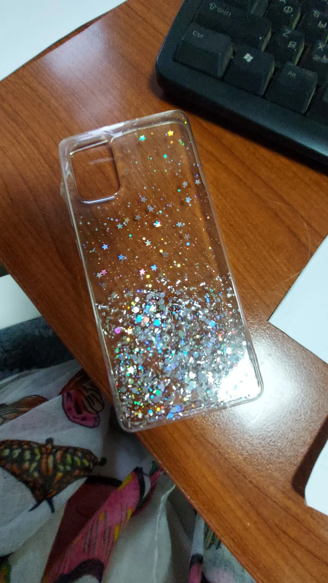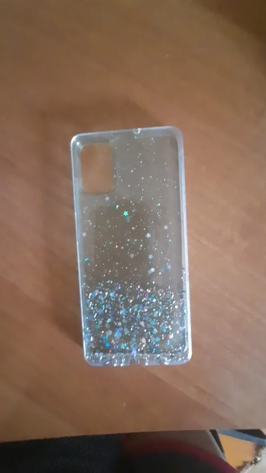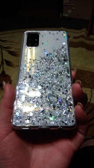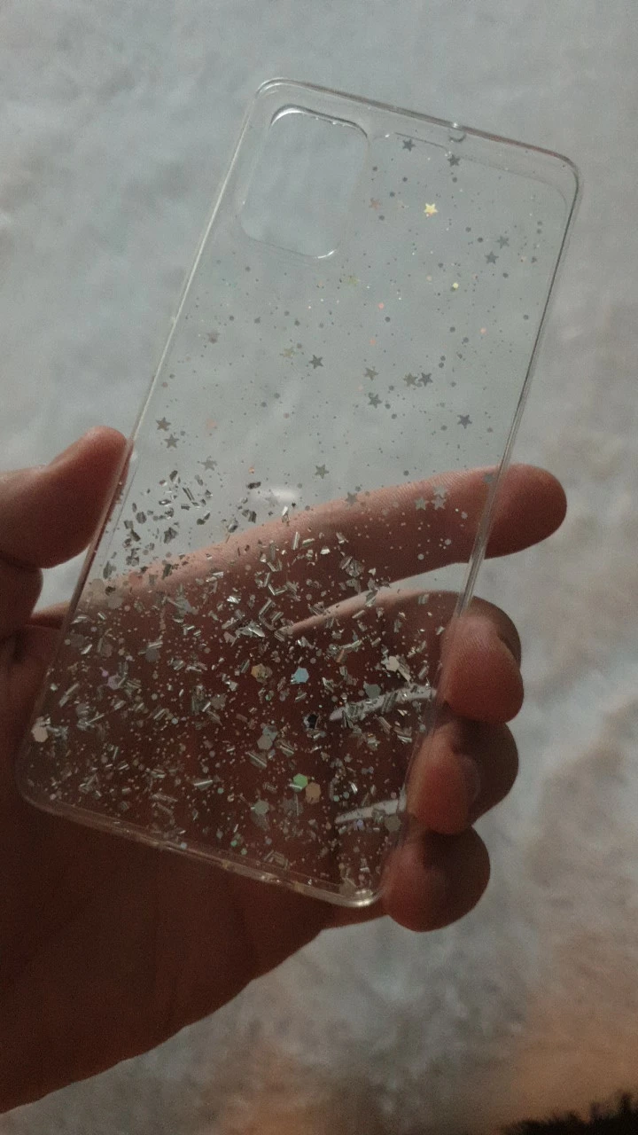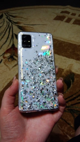 По факту блёсток немного меньше чем на фото, но не критично, чехол классный довольна, сзади утолщен, по бокам потоньше, сидит идеально на А51. Один минус шел больше 3х месяцев. В последний день срока защиты написала продавцу, сразу продлил срок, и через несколько дней пришёл чехол. Продавца и товар рекомендую.