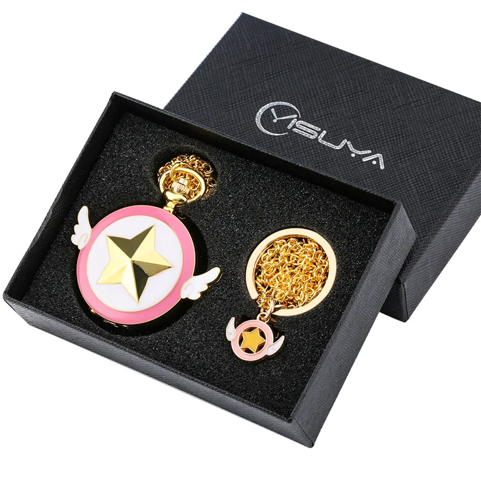 Подарочная коробка, ожерелье, карманные часы, подарочный набор, классический кулон В Стиле Аниме Сакура, брелок, Золотая цепочка, карманные часы, сувенирные подарки