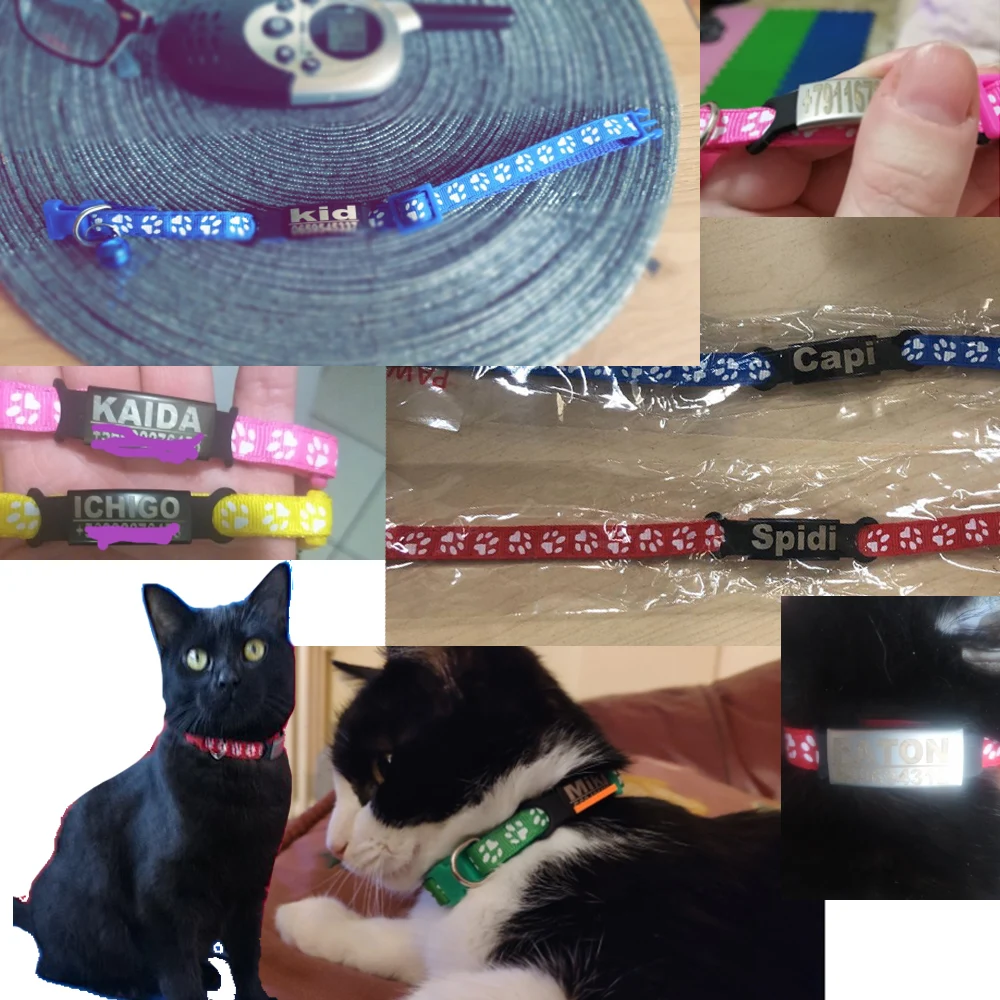 Ожерелья очень милые. Хорошее качество. Они поставляются с маленькой погремушкой, которую я легко извлекла из ожерелья, чтобы не беспокоить своих кошек. Не было никаких проблем с надписью их имени, достаточно, чтобы оставить сообщение с именем кота и номером телефона «name (+ 56911111111) и готов. Настоятельно рекомендуется.