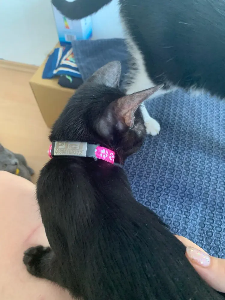 Очень доволен покупкой. Ожерелье может быть идеально адаптировано к размеру кота, в моем случае мой щенок по-прежнему является щенком, но когда я вырасту, оно все равно будет стоить того. Принт с именем и номером телефона был идеальным.