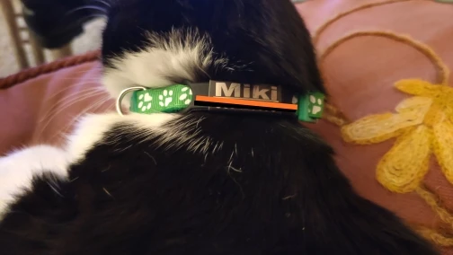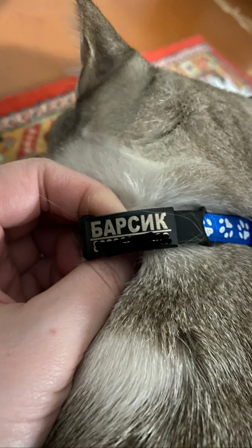 Хороший ошейник, лёгкий и удобный, сделали надпись как я просила. Рекомендую, для котика в самый раз.