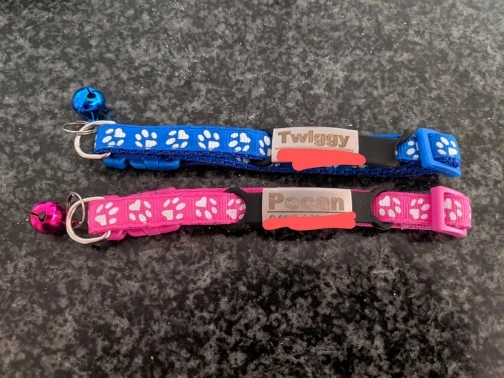Ошейники выглядят очень классно, гравировку сделали в точности, как я и просил. Но есть одно маленькое но. Думал, что с таким замком ошейник в экстренной ситуации расстегнется, а он, как бы я ни старался руками создать резкое натяжение, очень прочно застегнут. Коты часто гуляют на улице и лазают по деревьям, поэтому снял с них эти ошейники. Но выглядят очень круто, возможно попробую «доработать» замок напильником :)