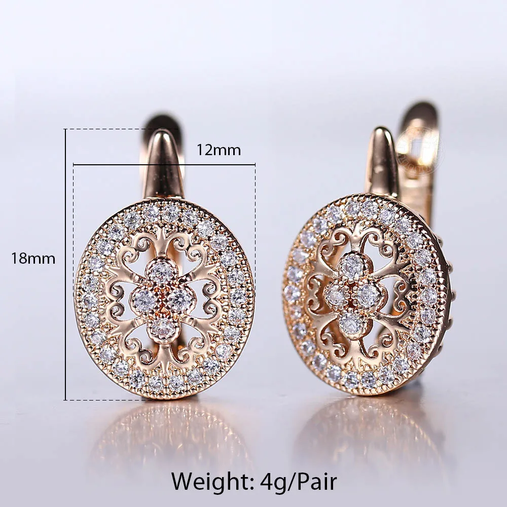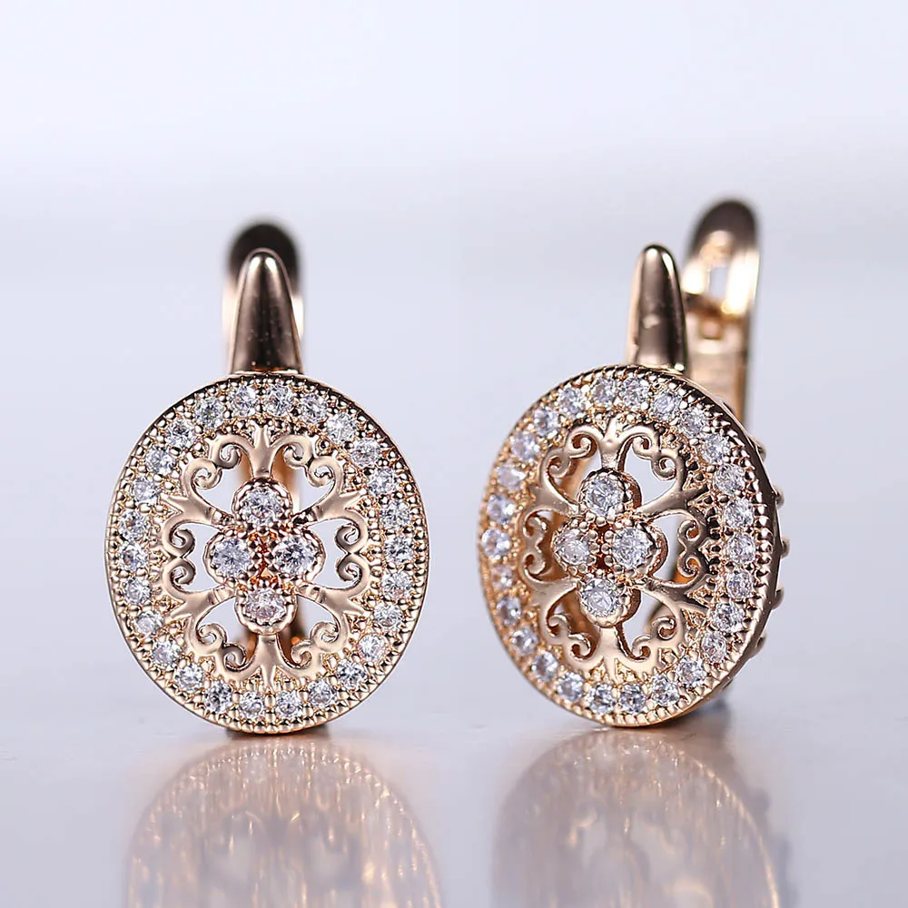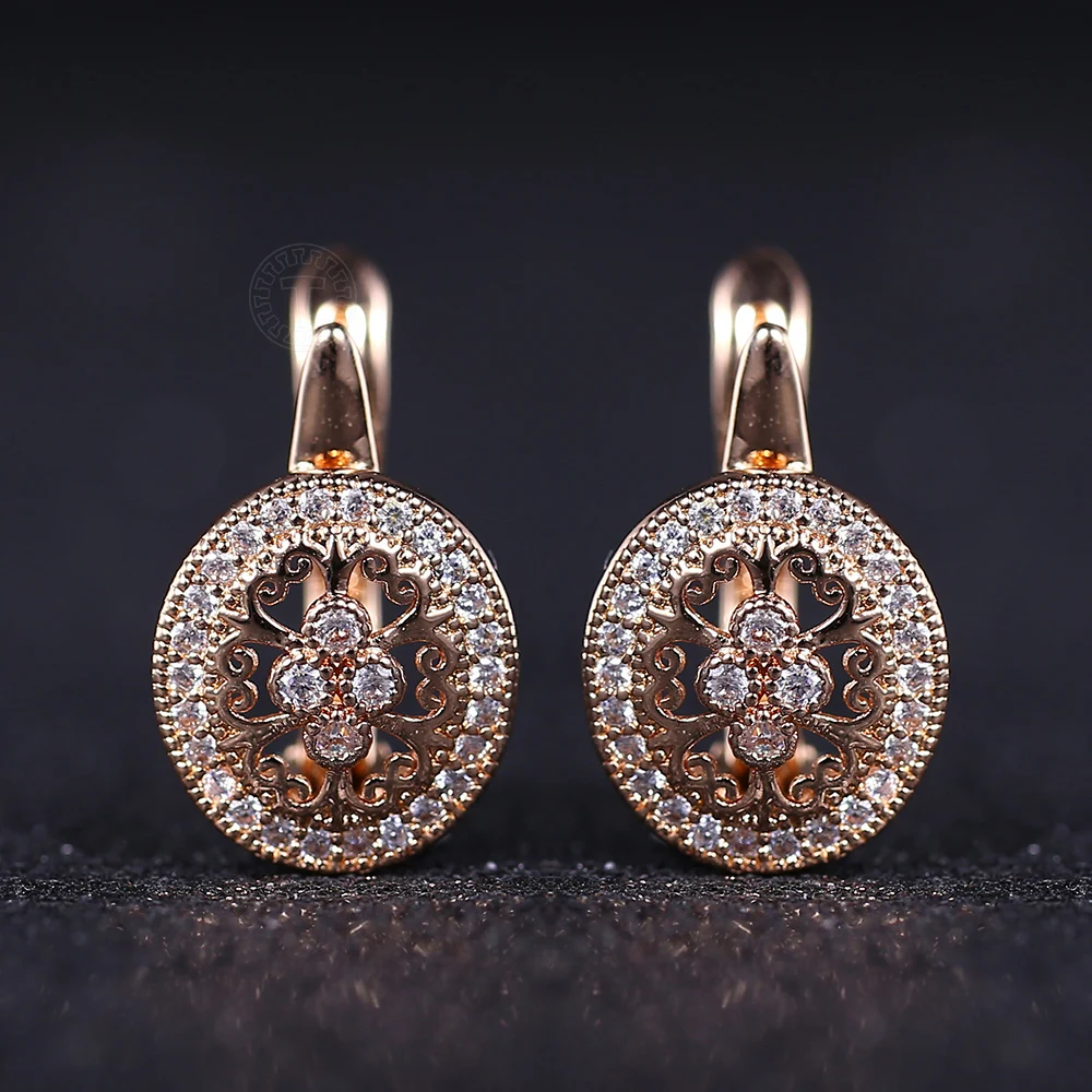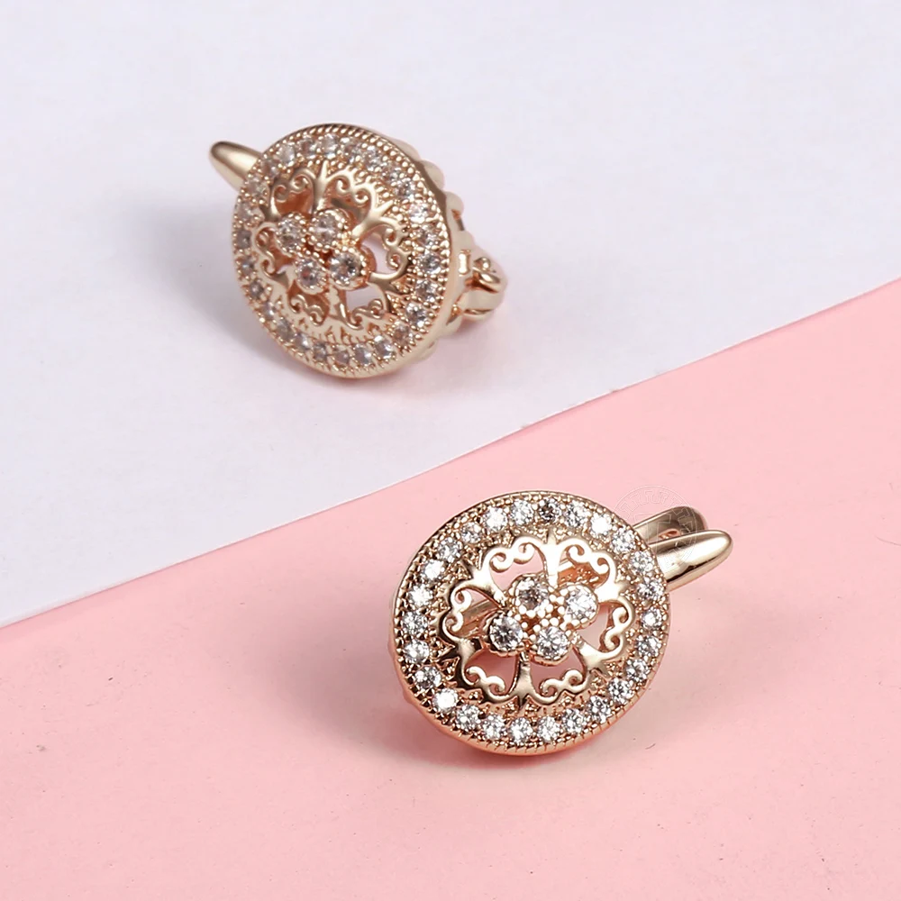 Серьги-подвески женские, розовое золото 585 пробы, с полым цветком, с натуральным белым кубическим цирконием, GE290