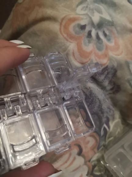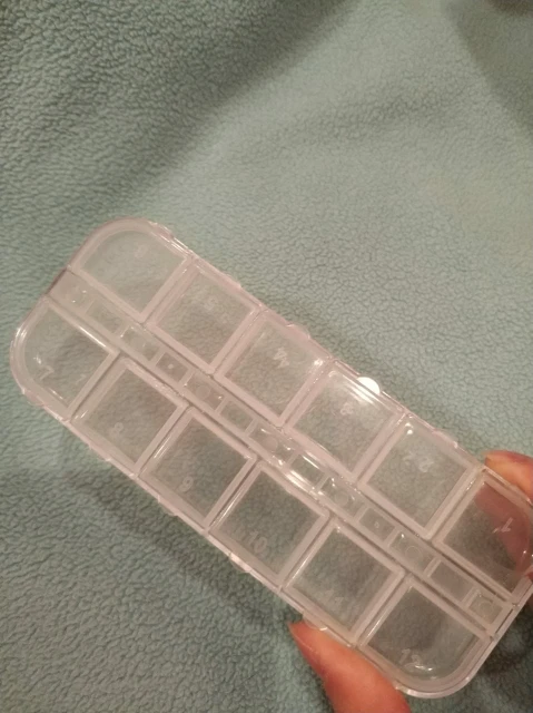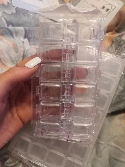 Замечательная коробочка для хранения страз.Мне очень понравилась.Приехала без повреждений.Ячейки хорошо закрываются и отлично держатся.Большое количество страз вмещает одна ячейка.Я очень довольная.Продавца однозначно рекомендую.