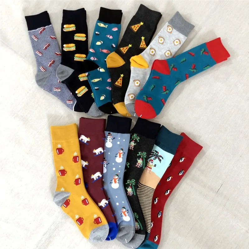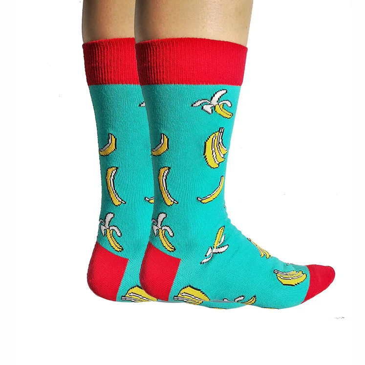 2020 цветные хлопковые Для мужчин носки Skarpetki Смешные счастливые Harajuku крутая футболка с рисунком пингвина банан перец яйцо Снеговик на Рождество Для мужчин носки
