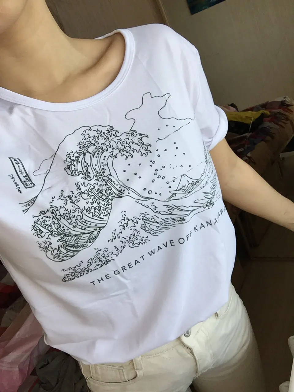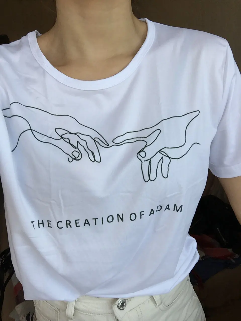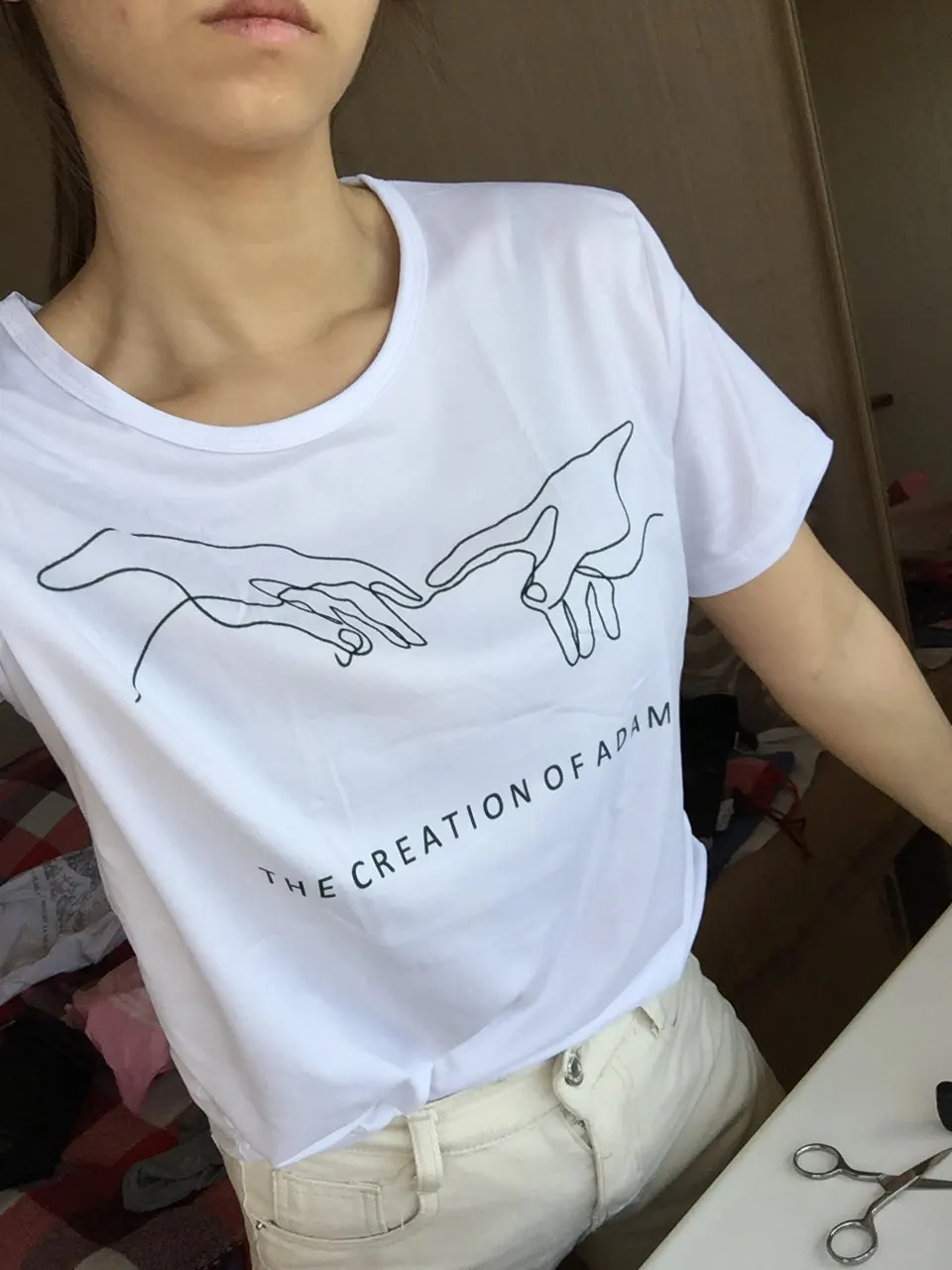Футболка женская с рисунком серьги, черно-белый топ в стиле Харадзюку, одежда с графическим принтом