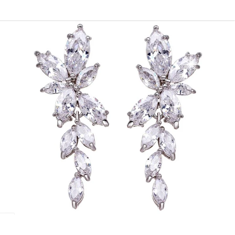 Женские и вечерние серьги Bettyue, элегантные серьги из кубического циркония с симмерическими листьями и серебряным покрытием