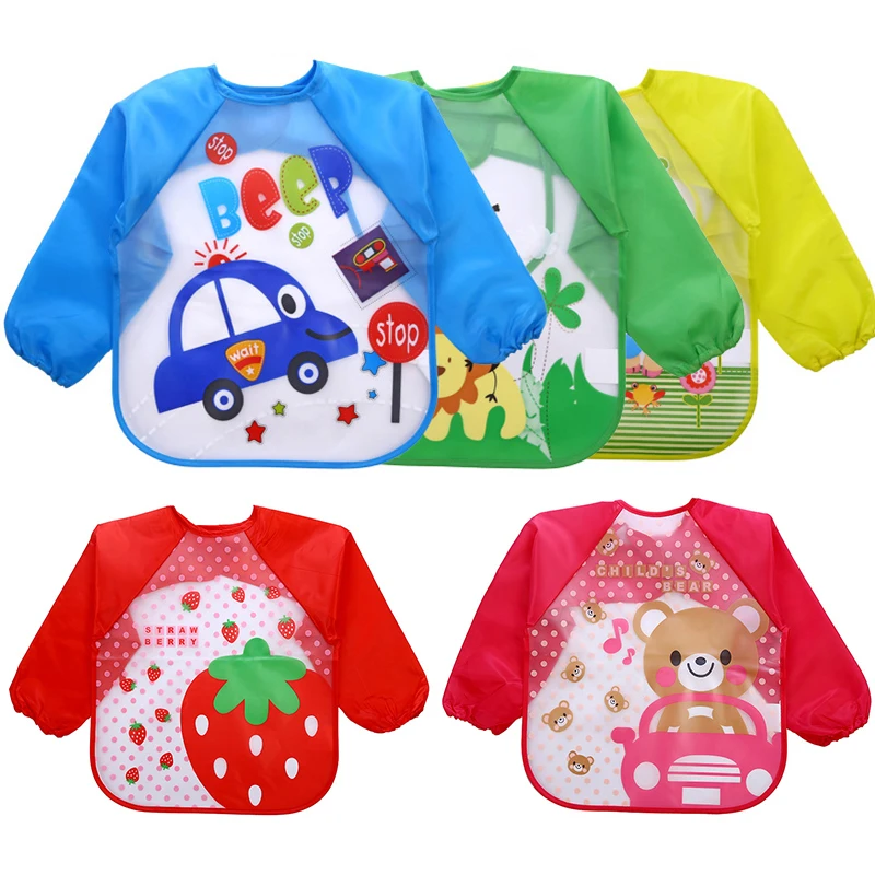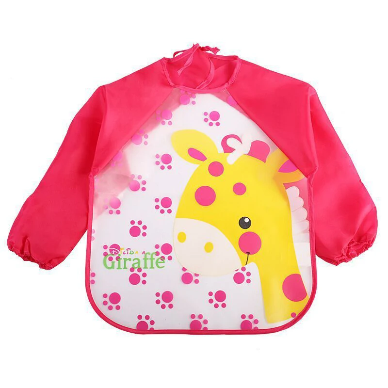Нагрудники для маленьких мальчиков с милым мультяшным рисунком, водонепроницаемые нагрудники для девочек с длинным рукавом и изображением животных, Детский фартук для кормления