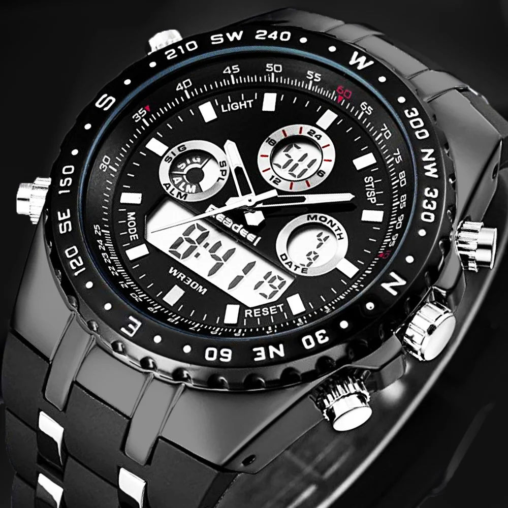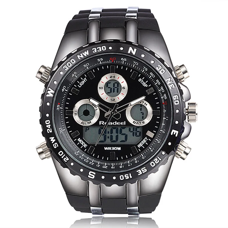 Часы Readeel Мужские кварцевые, брендовые Роскошные цифровые светодиодные водонепроницаемые спортивные в стиле милитари, с хронографом