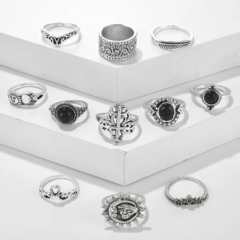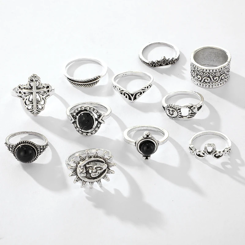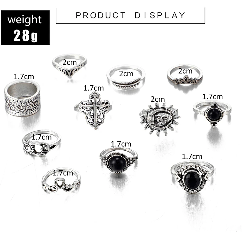Docona 11 шт.компл. винтажные солнце крест черный опал стразы набор колец средней длины для женщин кольца на костяшки кольца ювелирные изделия 14420