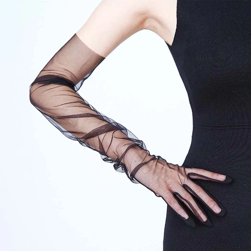 Лидер продаж, ультратонкие сетчатые перчатки для Хэллоуина, аксессуары для фотосъемки на локтях, модные и элегантные темпераментные женские черные шелковые перчатки