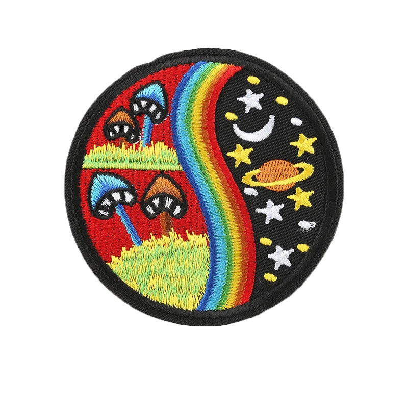 Красочный хип-хоп стиль любовь мир V жест Солнце Луна гриб вышивка ...