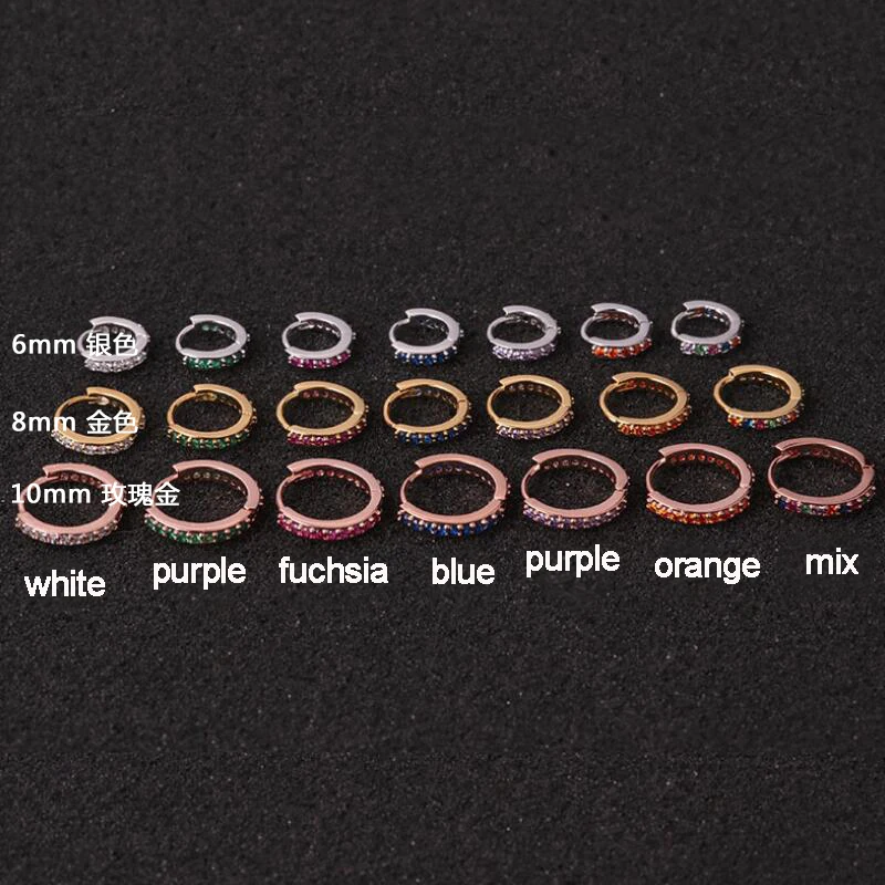 Круглые 6, 8, 10 мм, розовое золото, серебристый цвет, с разноцветными фианитами, спиральный для хряща, серьги-кольца из нержавеющей стали, серьги-гвоздики, ювелирные изделия для пирсинга