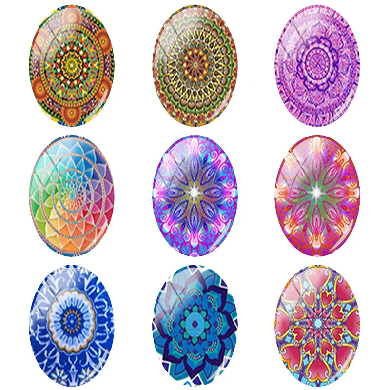 JWEIJIAO Мандала красочные декоративные узоры овальной формы 18x25 мм 5 шт./лот стекло кабошон купол плоская задняя часть DIY аксессуары CT323Изображения продуктов: