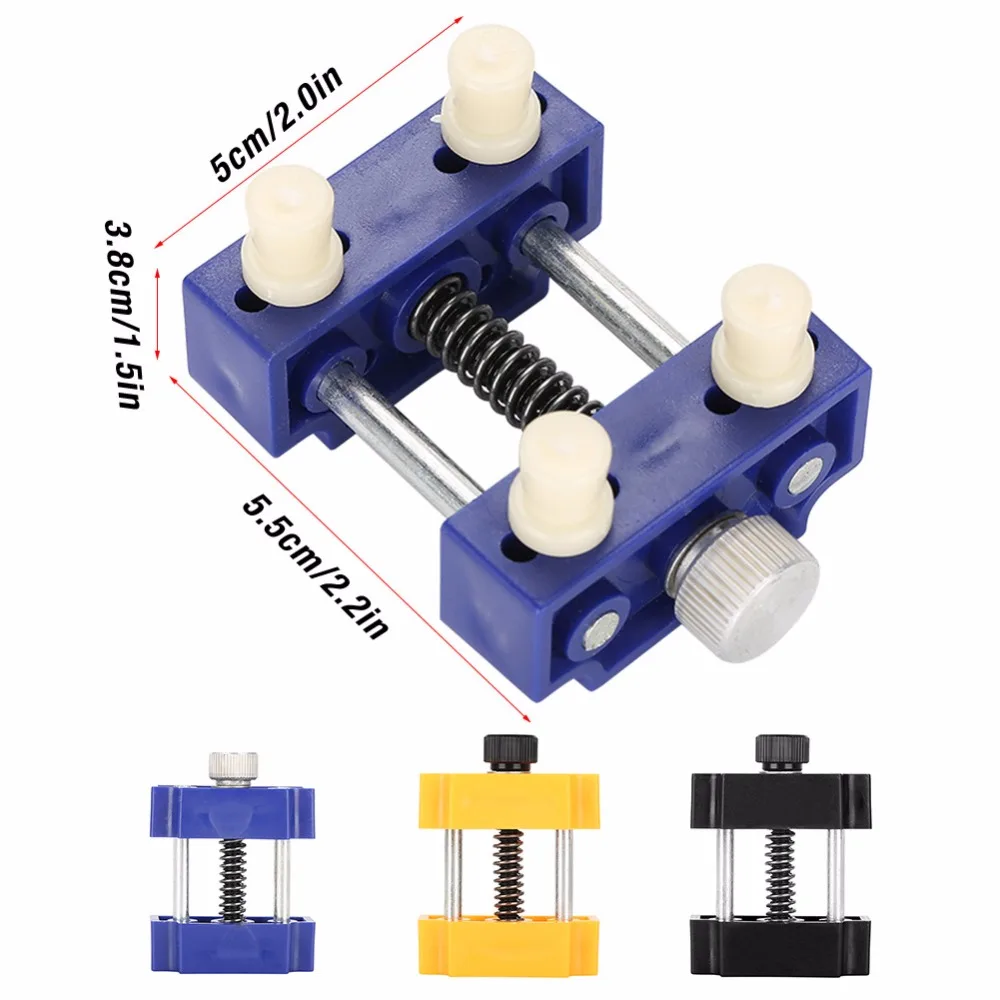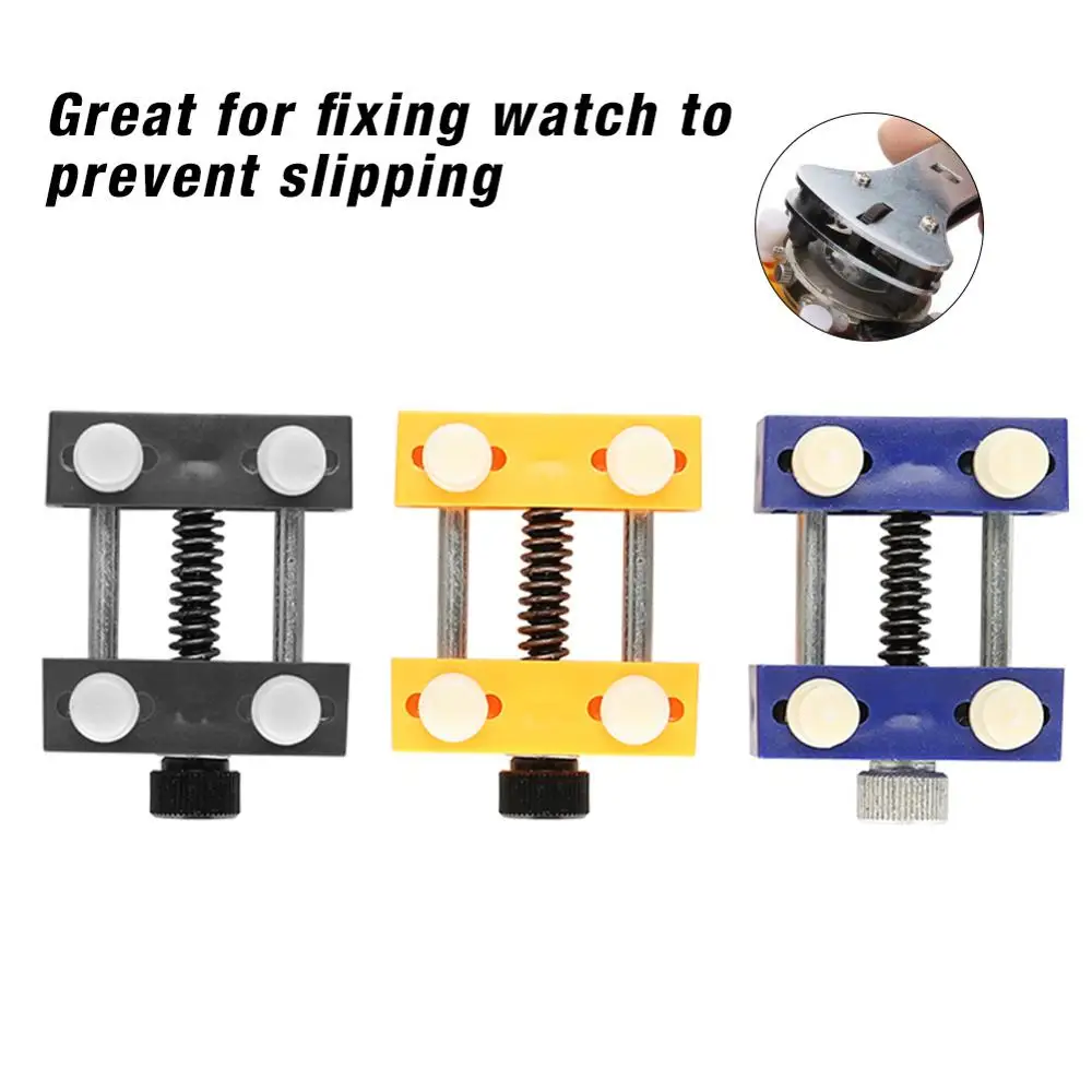 Особенности:1. Изготовлен из металла и пластика, прочный и прочный.2. Отлично подходит для фиксации часов, чтобы предотвратить скольжение.3. Облегчите ремонт часов.4. Идеальный инструмент для часовщика, ювелира.5. Легкий и удобный, чтобы взять с собой.Спецификация:Тип: инструмент для ремонта часовМатериал: металл + пластикДополнительный цвет: синий, желтый, черныйРазмеры: прибл. 5,5*5*3,8 см/2,2*2,0*1,5 дюймовВес: прибл. 76 г/2,7 унцийФункция: инструмент для ремонта часовС использованием метода:С циферблатом часов вниз, поместите часы на нейтральную сторону основания в случае защемления, затяните винт и закрепите часы, затем Открутите заднюю крышку часов с помощью открывателя.В комплект входит:1 х инструмент для ремонта часов